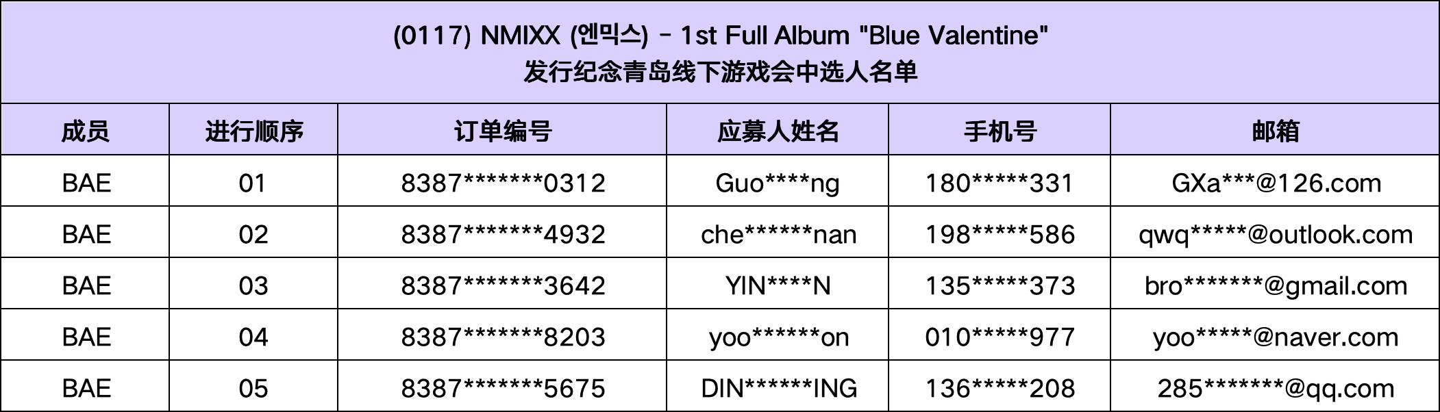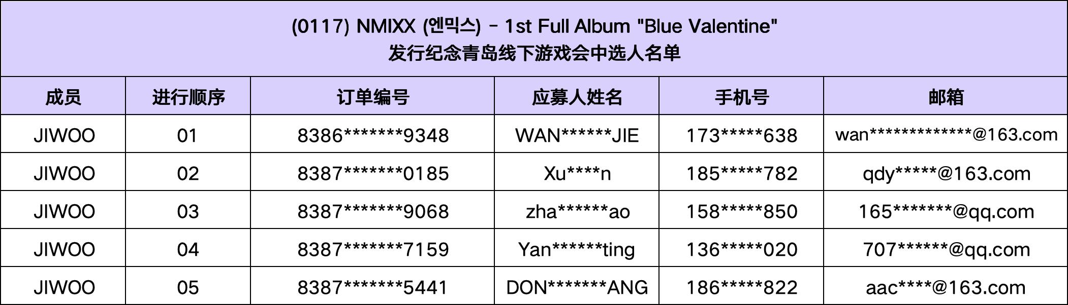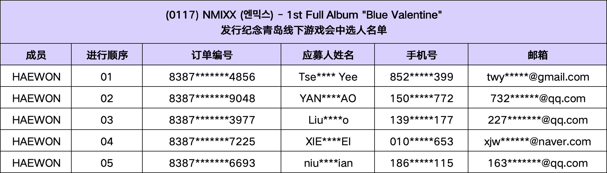 恭喜您中选 (1/17) NMIXX - 1st Full Album"Blue Valentine" 发行纪念青岛线下游戏会。