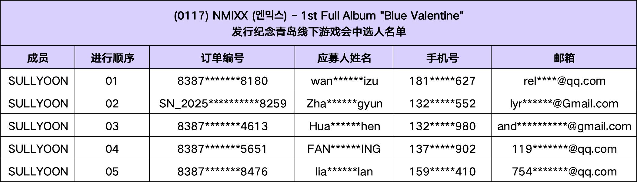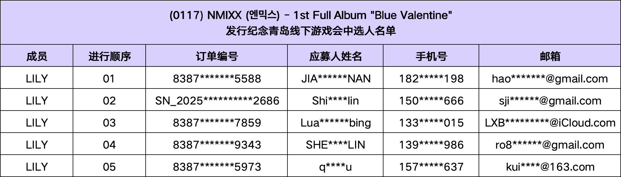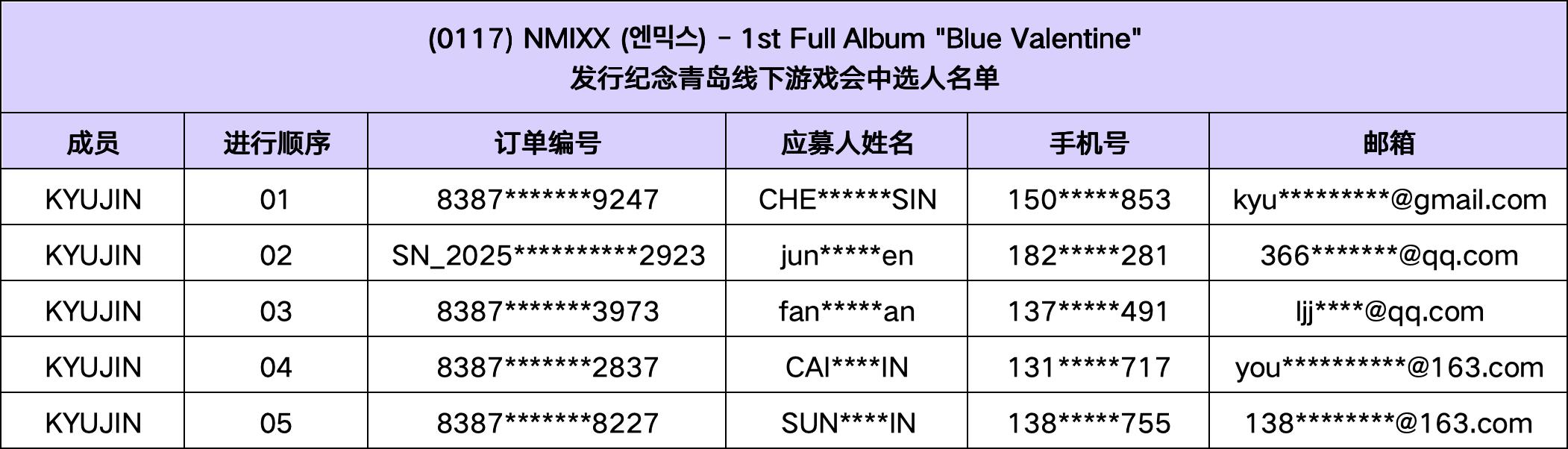 恭喜您中选 (1/17) NMIXX - 1st Full Album"Blue Valentine" 发行纪念青岛线下游戏会。