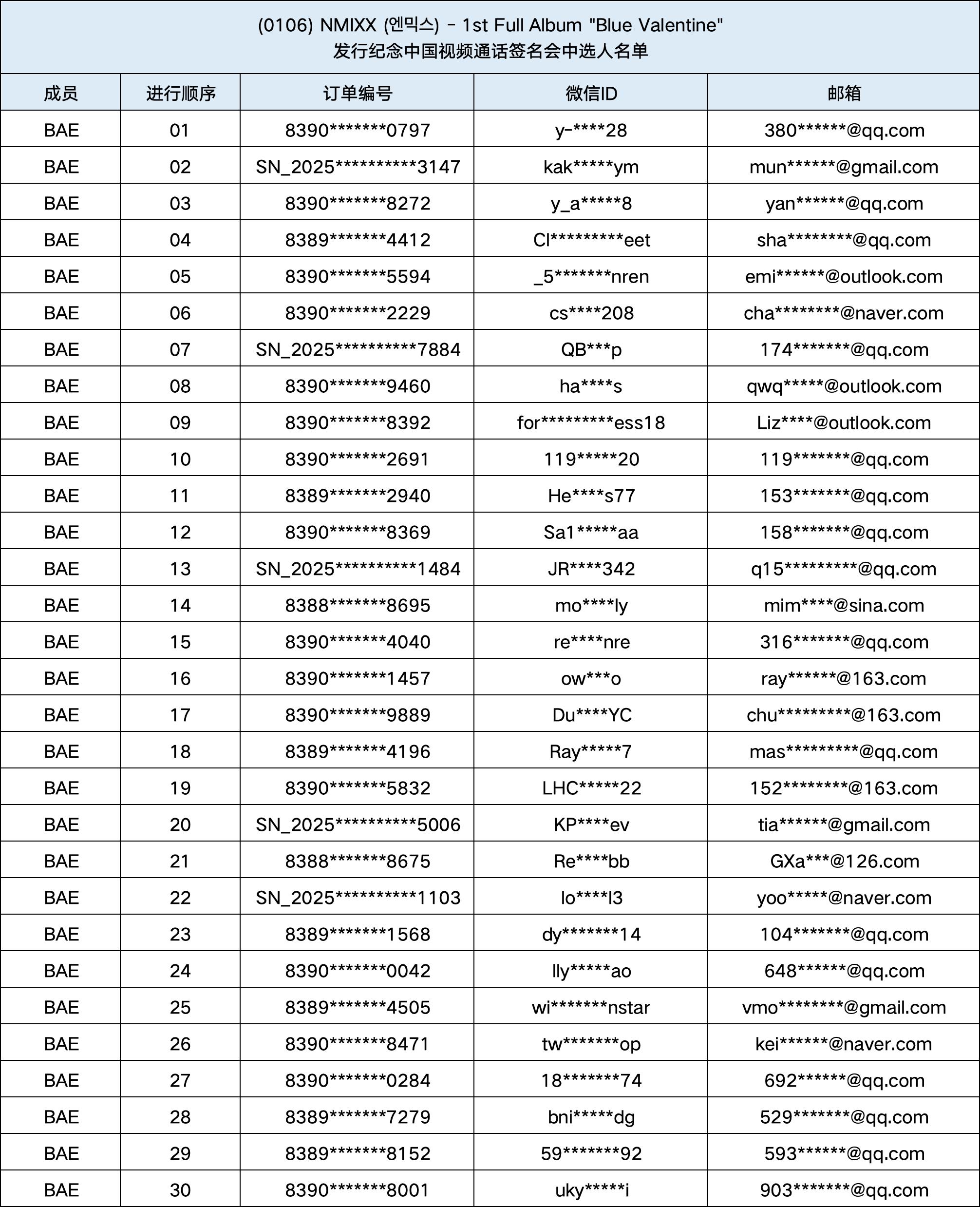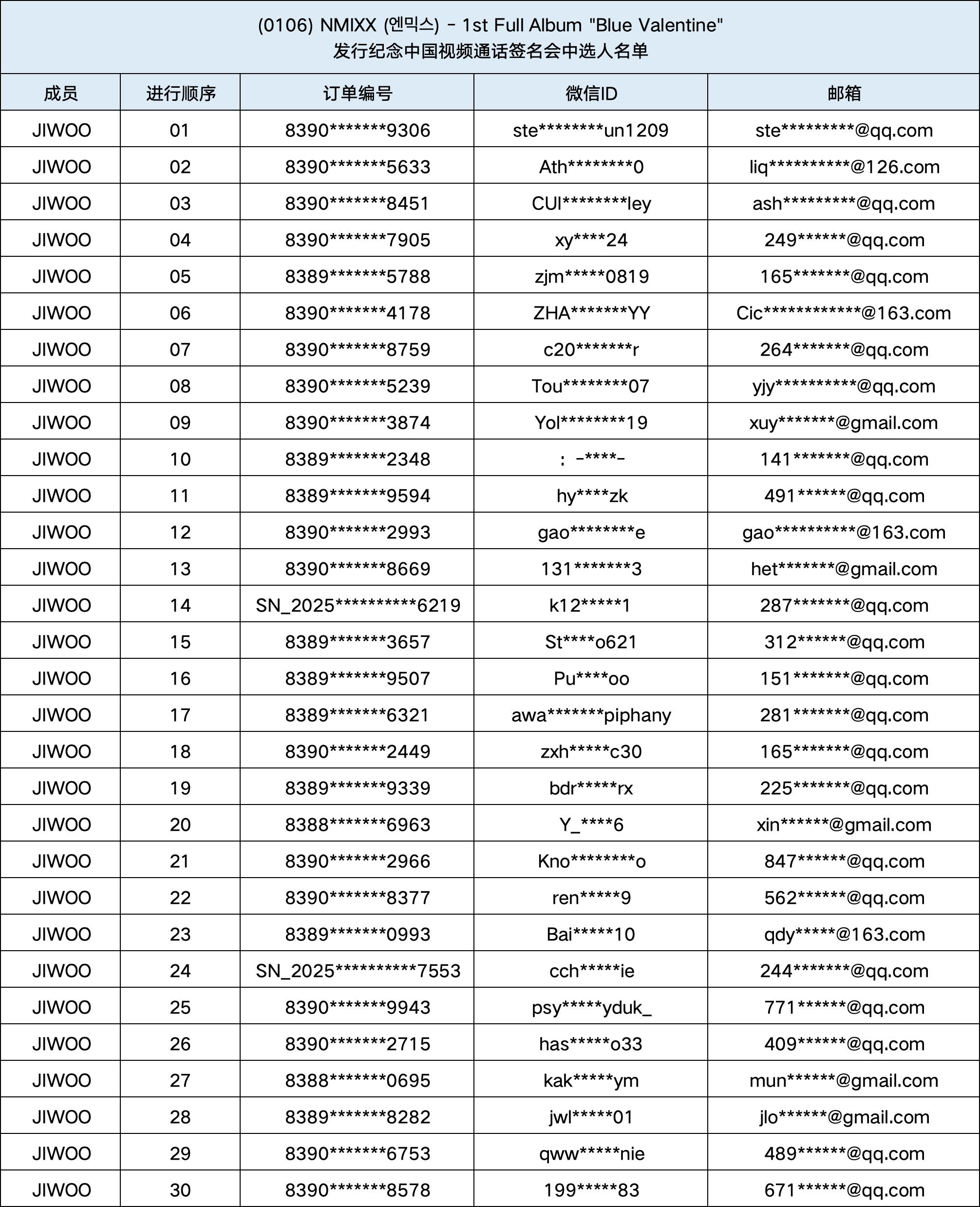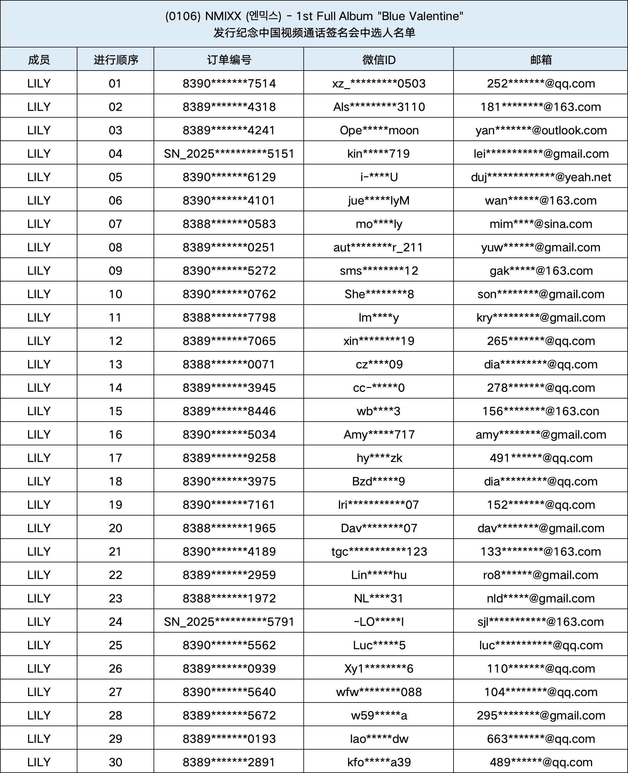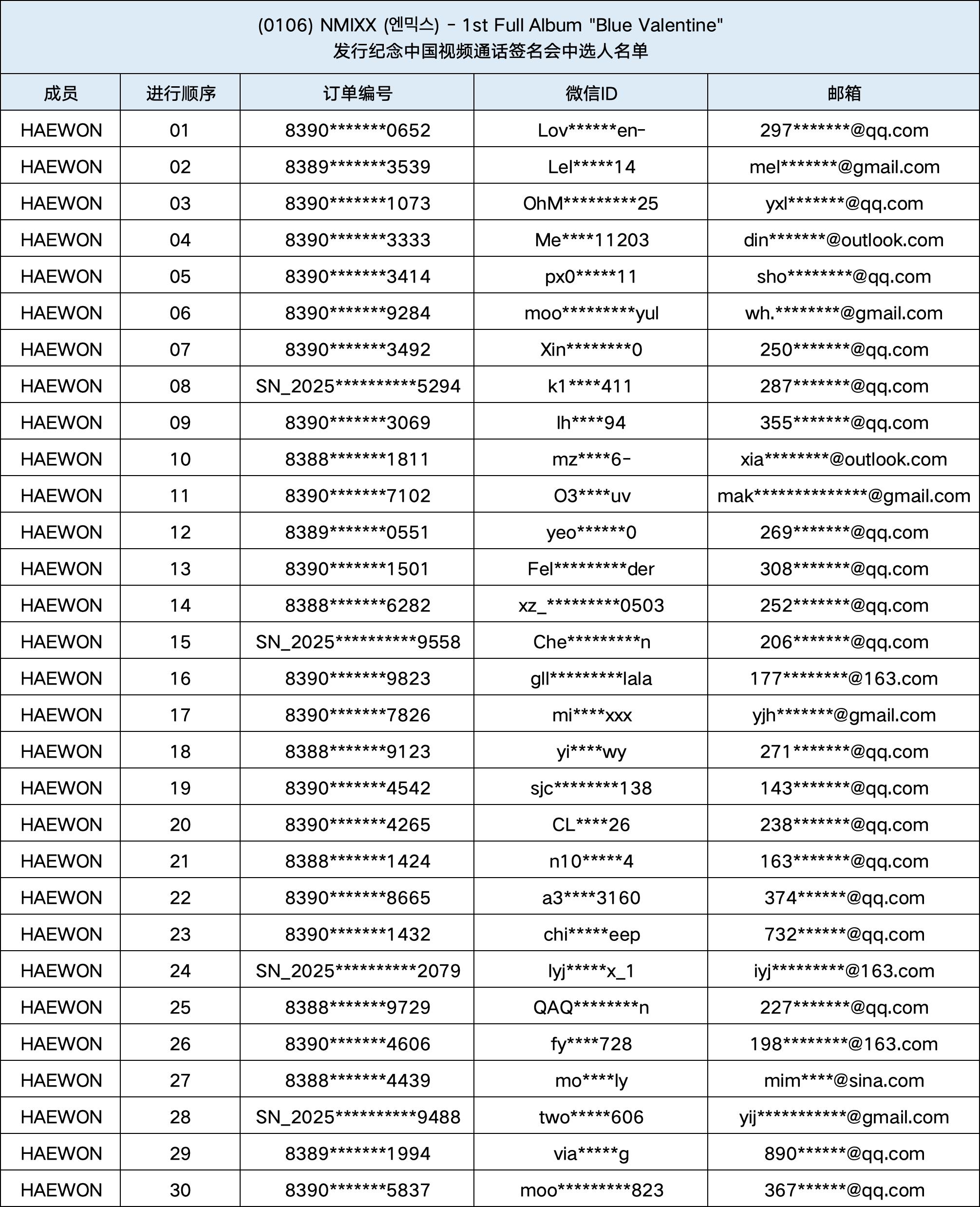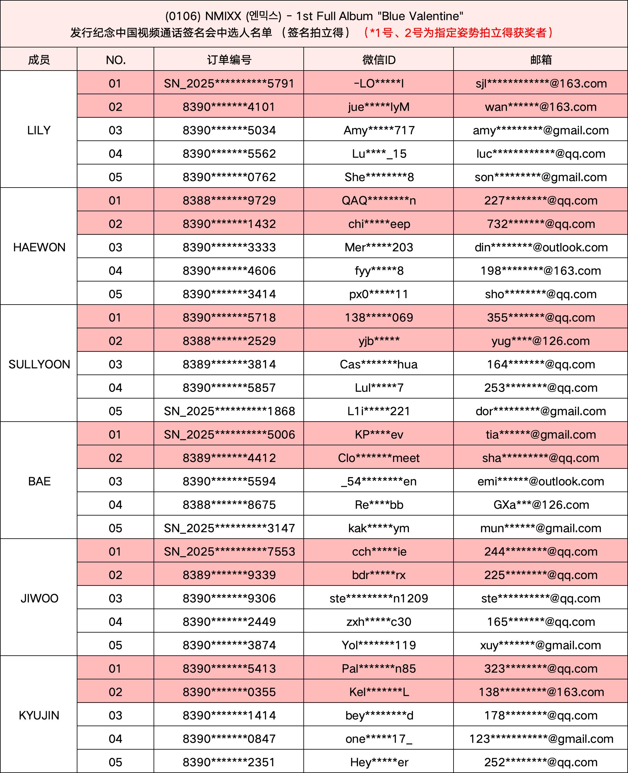 恭喜您中选 (1/6) NMIXX (엔믹스) - 1st Full Album "Blue Valentine" 发行纪念1:1视频通话签名会。