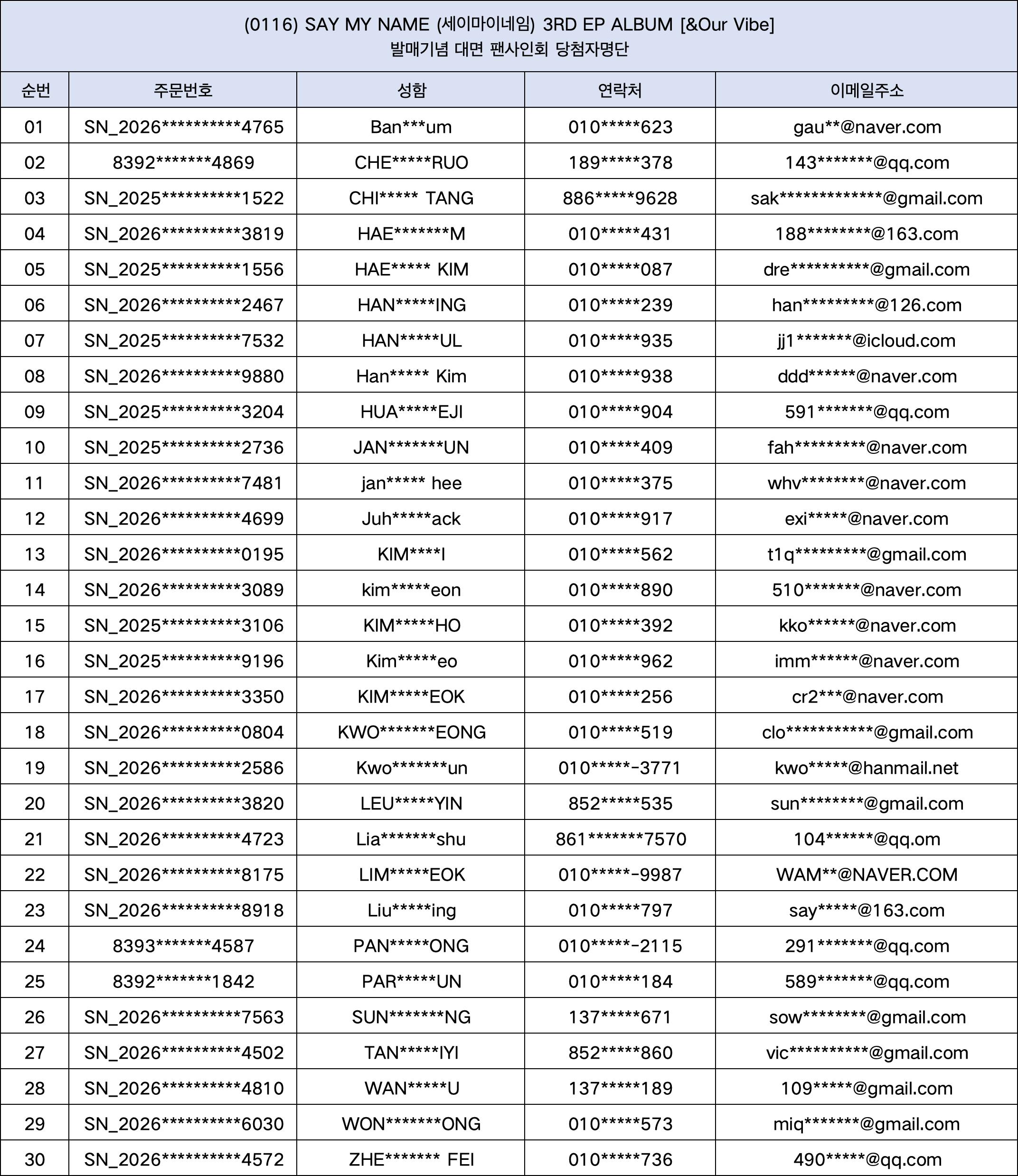恭喜您中选 (0116) SAY MY NAME (세이마이네임) 3RD EP ALBUM [&Our Vibe] (Hype Vibe ver.)发行纪念签名会活动。