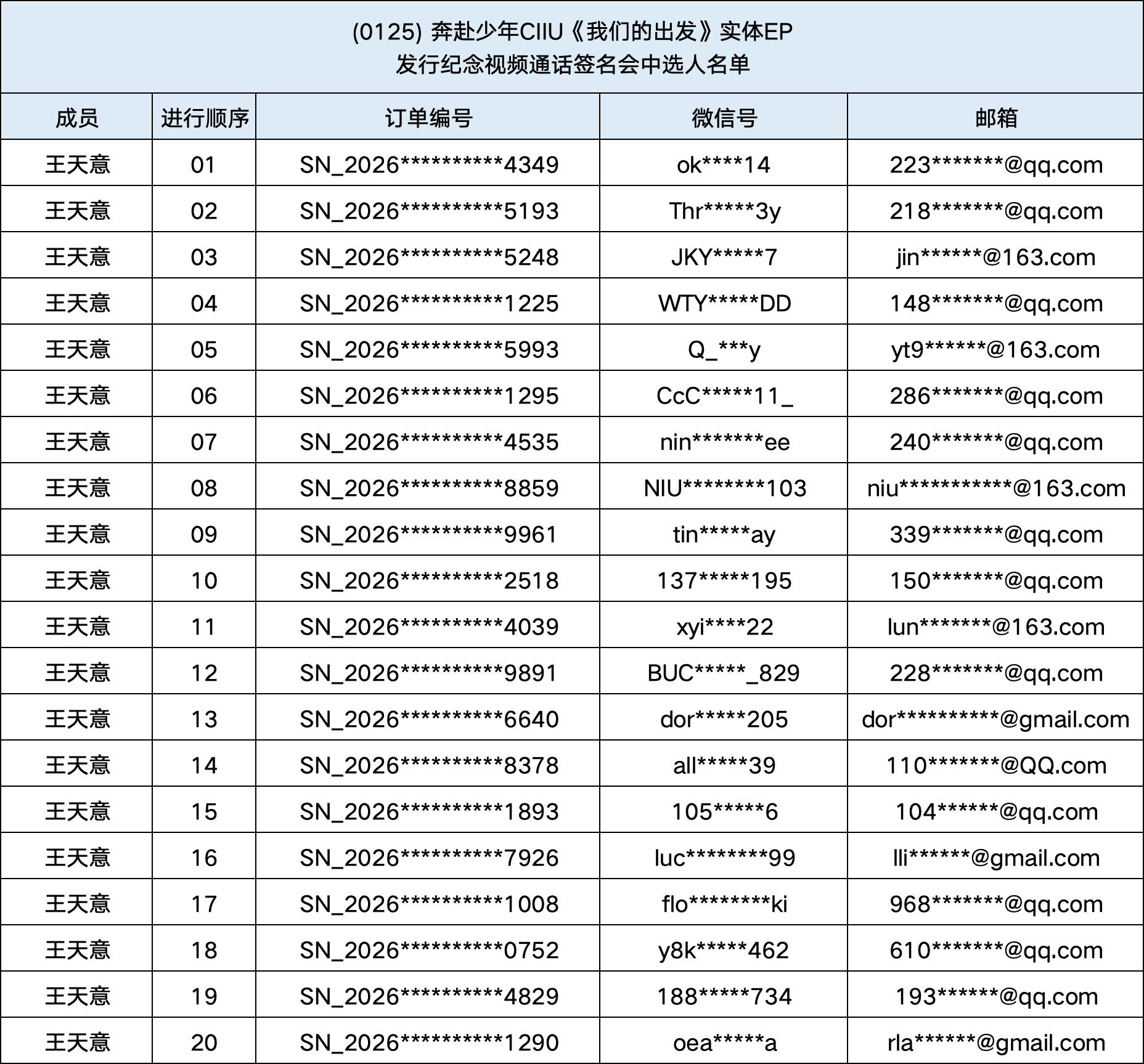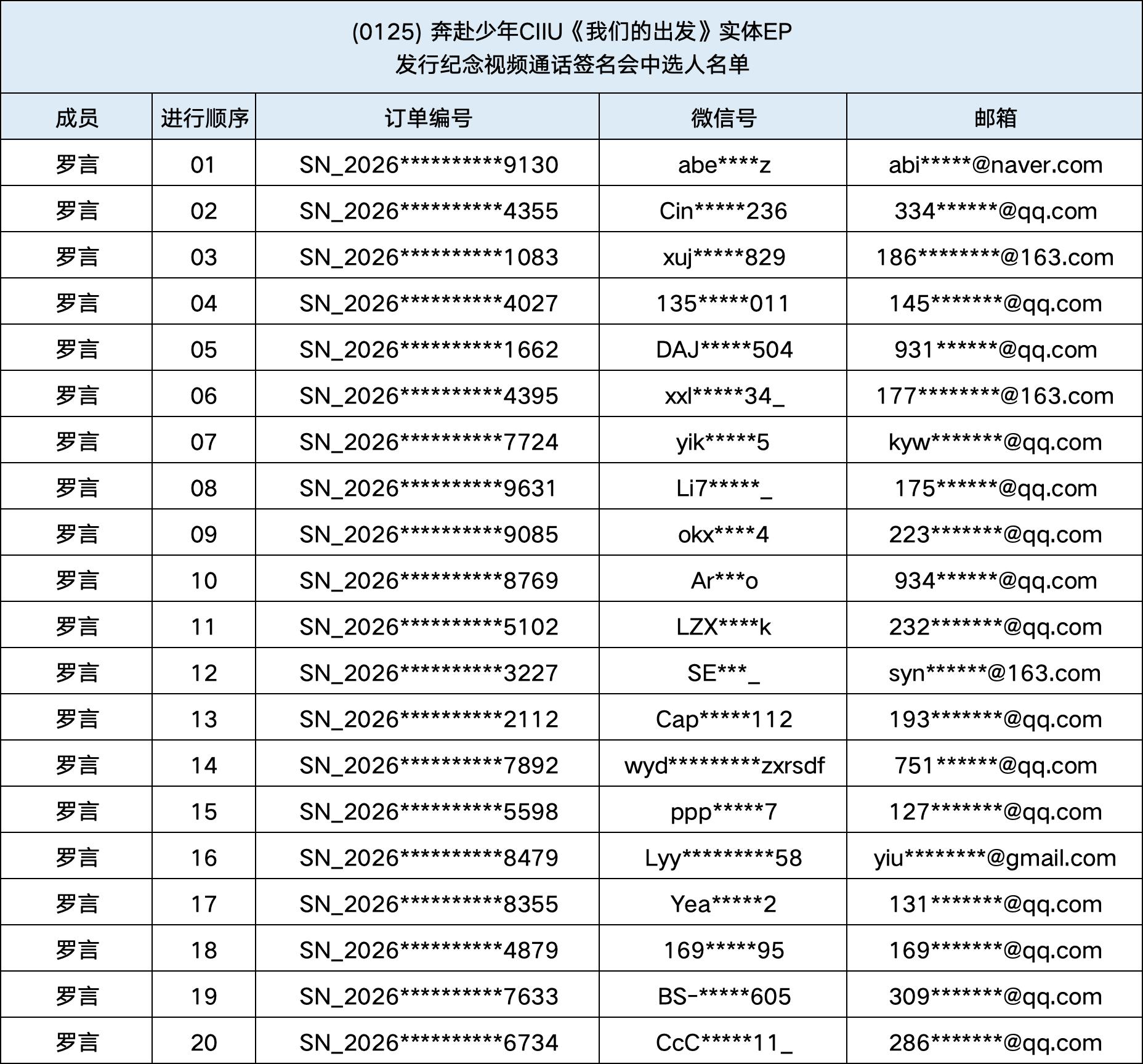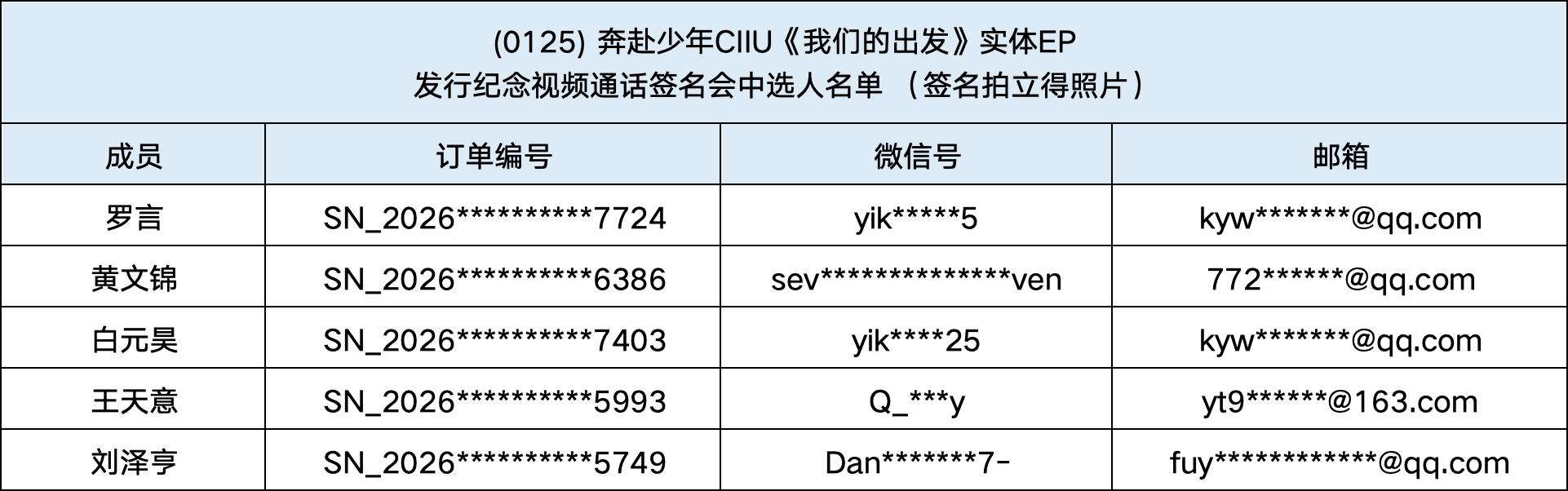恭喜您中选 (0125) 奔赴少年CIIU《我们的出发》实体EP发行纪念中国视频通话签名会。
