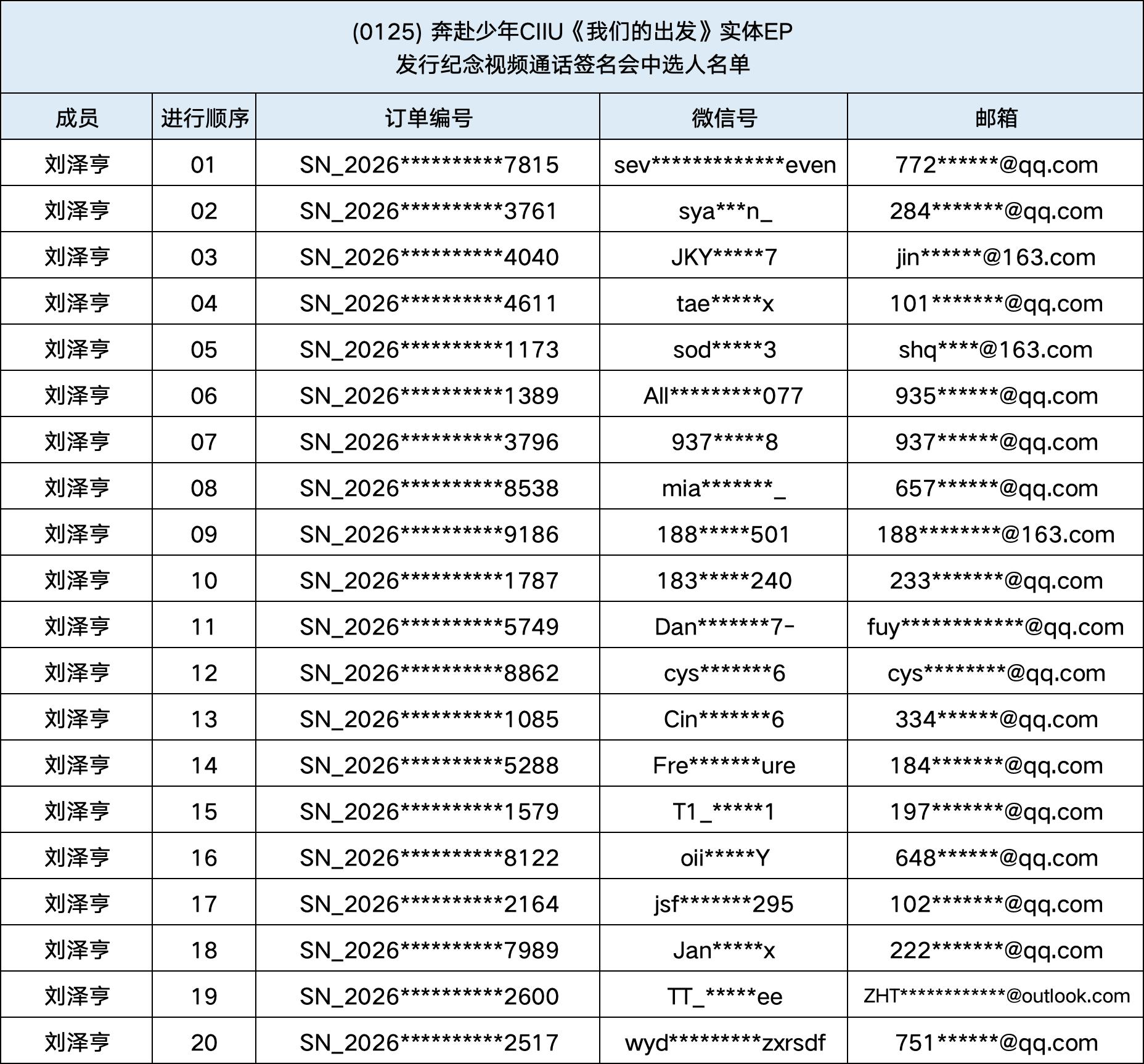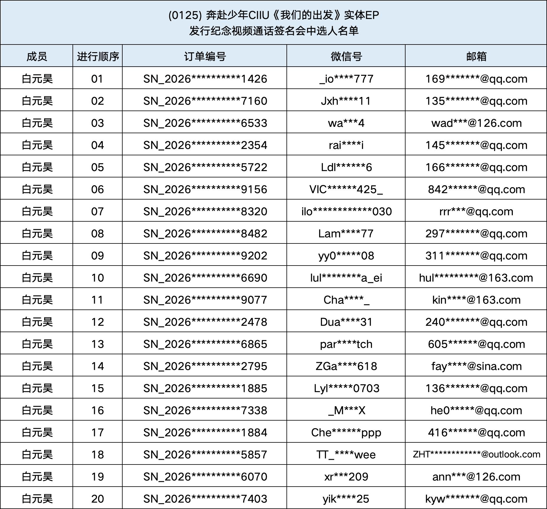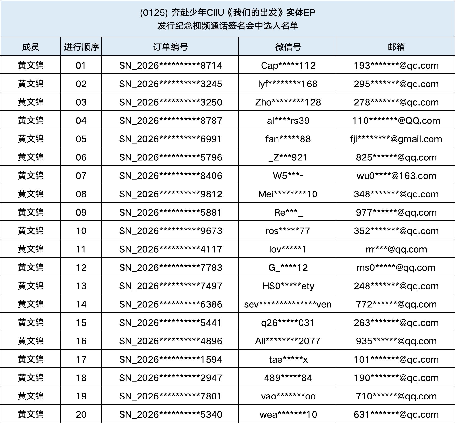 恭喜您中选 (0125) 奔赴少年CIIU《我们的出发》实体EP发行纪念中国视频通话签名会。