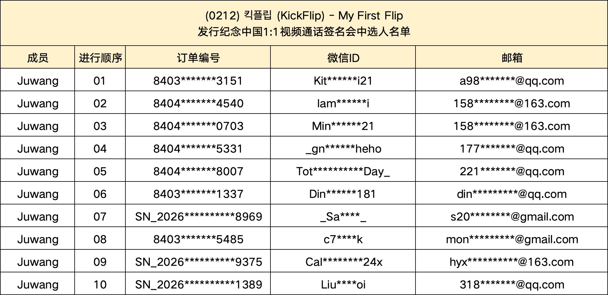 恭喜您中选 (0212) 킥플립 (KickFlip) - My First Flip 发行纪念中国视频通话签名会。