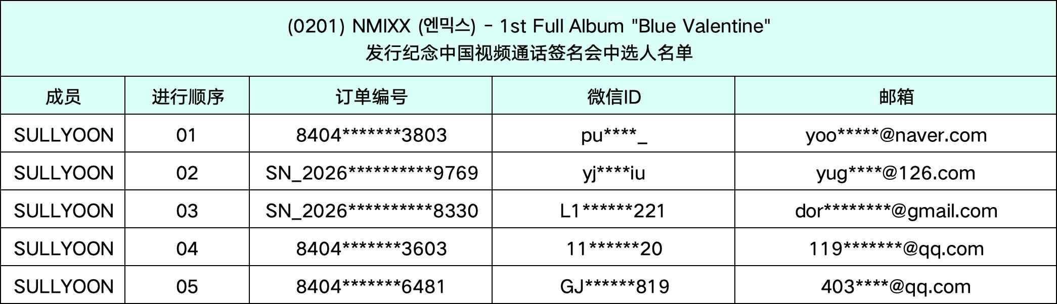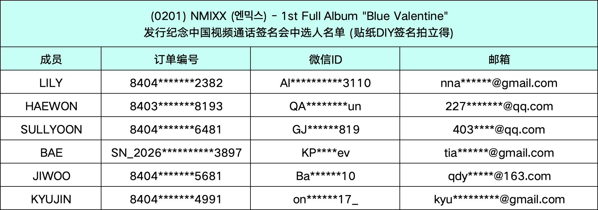恭喜您中选 (2/1) NMIXX (엔믹스) - 1st Full Album "Blue Valentine"发行纪念1:1视频通话签名会。