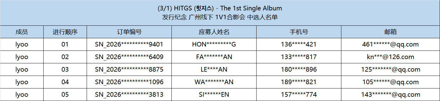 恭喜您中选 0301 HITGS (힛지스) - The 1st Single Album - Things we love : H 发行纪念广州合影会
