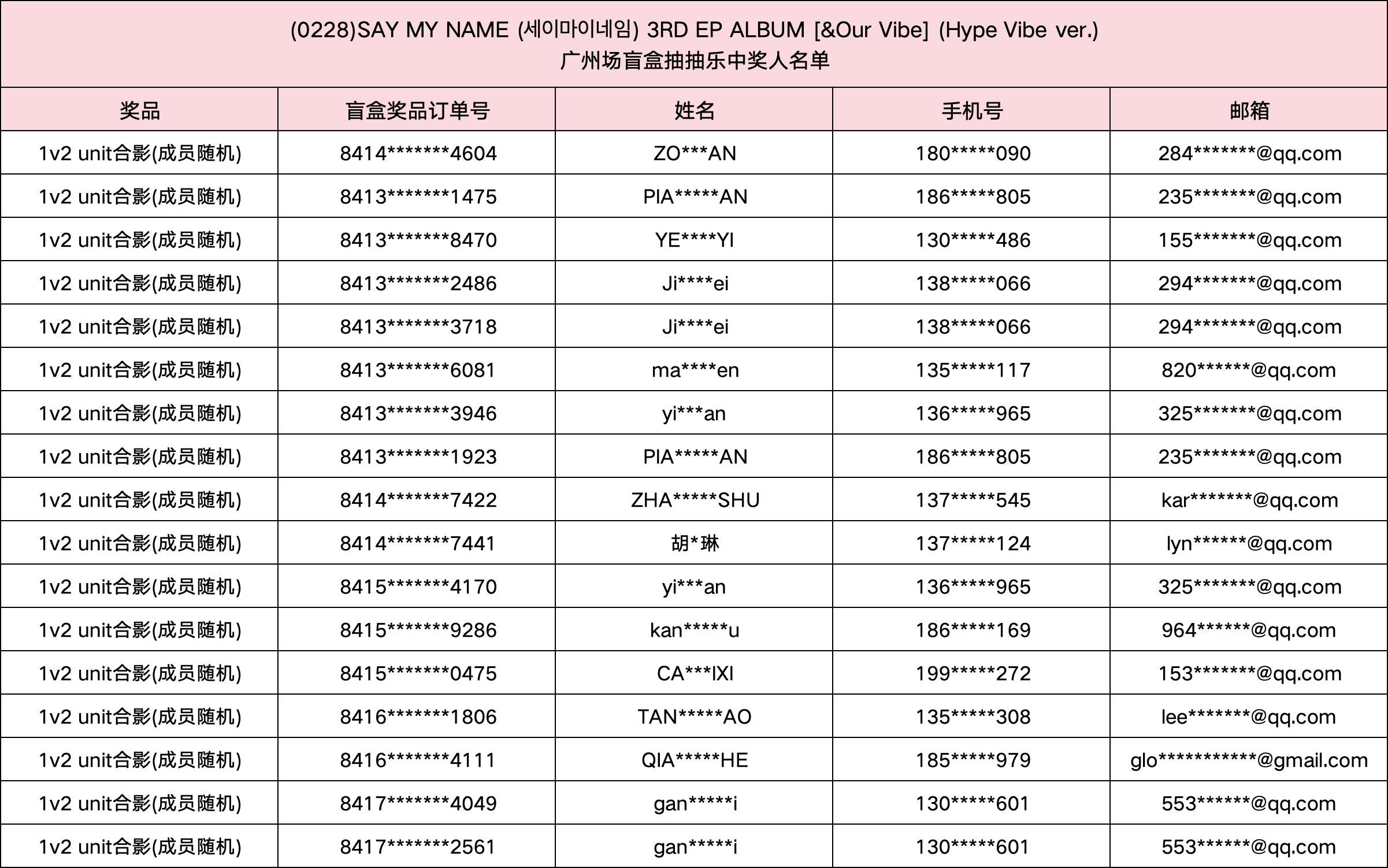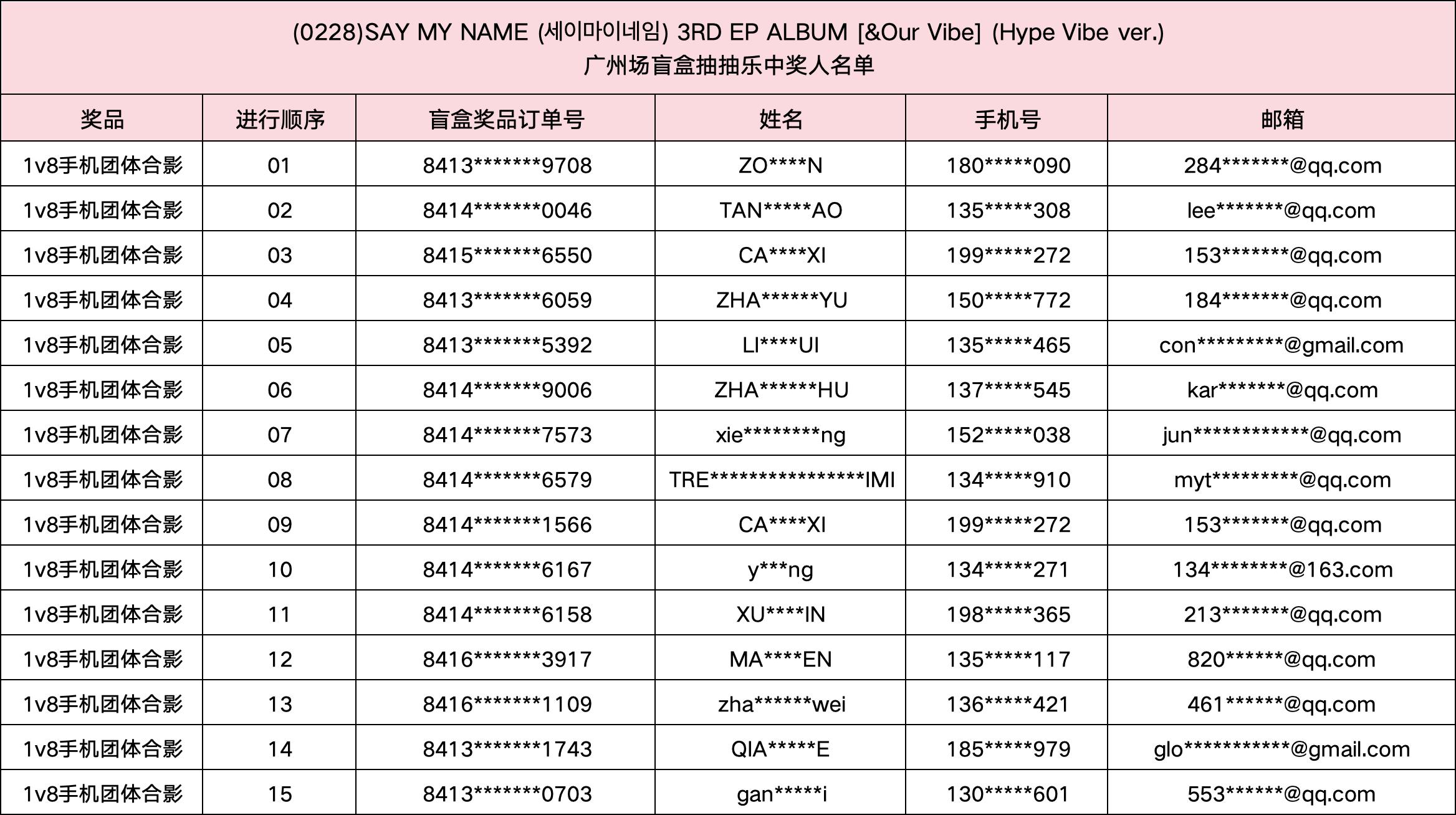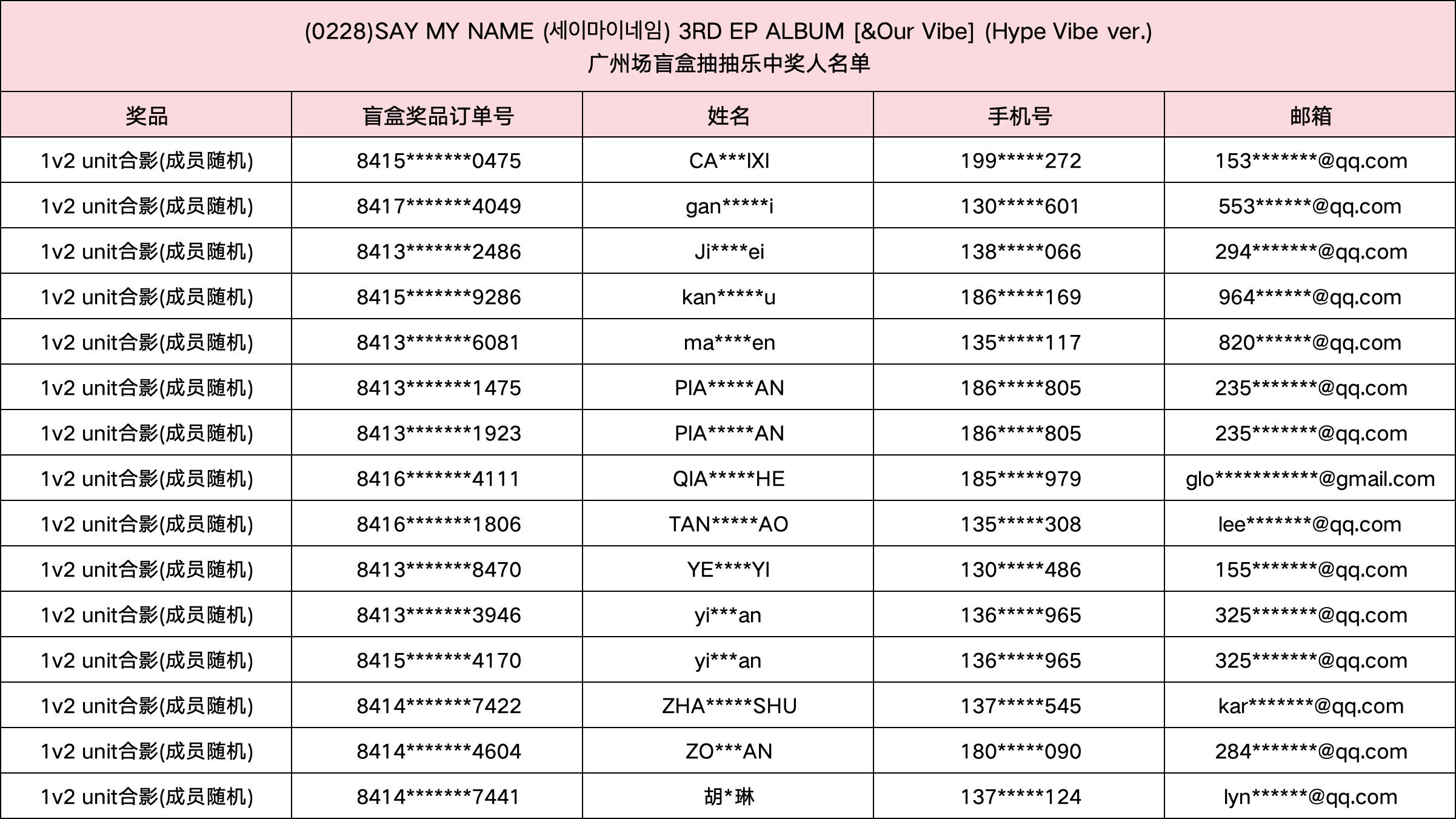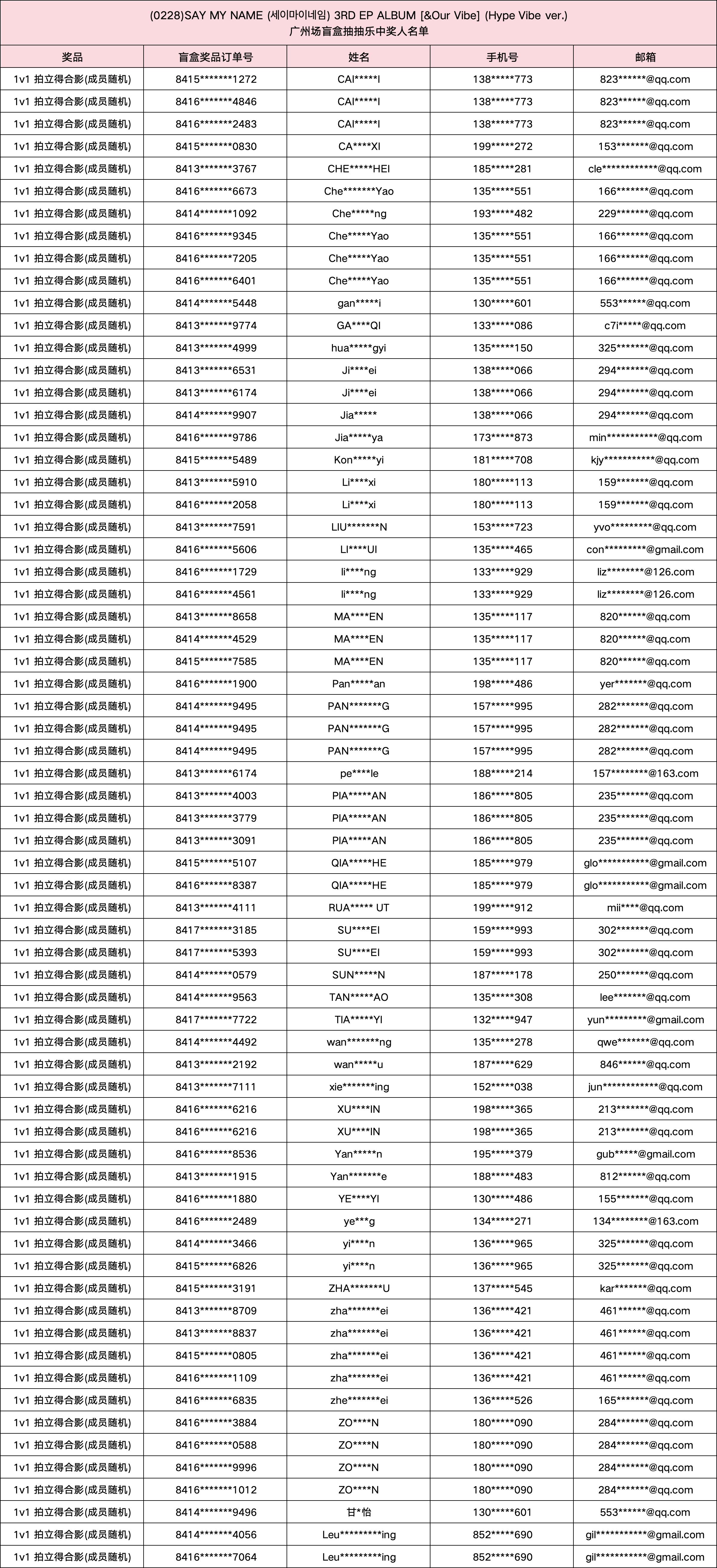 (0228) SAY MY NAME (세이마이네임) 3RD EP ALBUM [&Our Vibe] 发行纪念广州场盲盒抽抽乐。