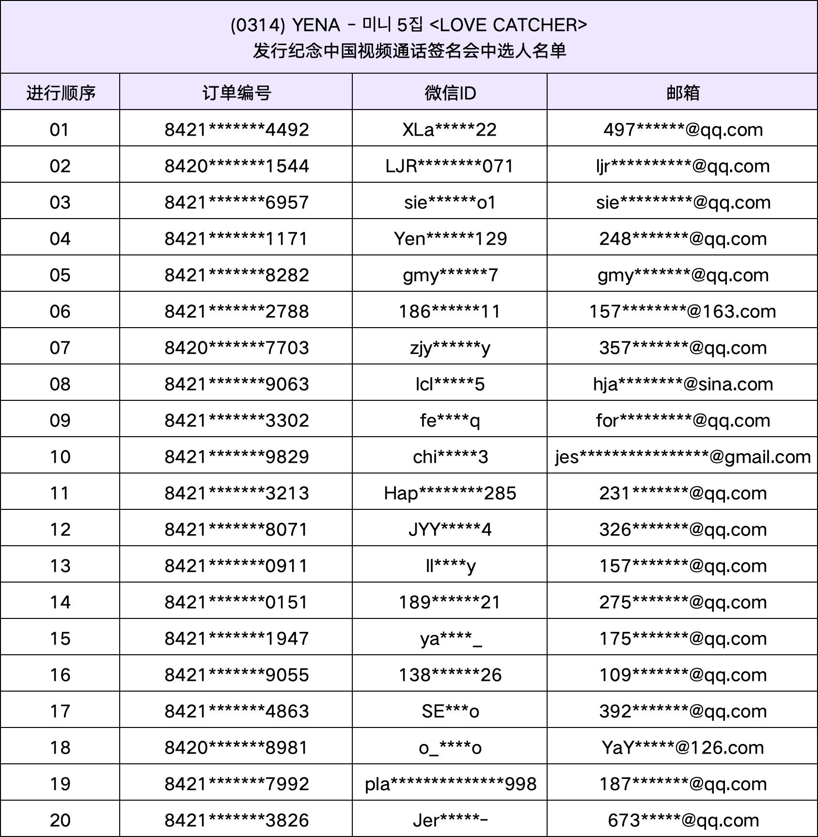 恭喜您中选 (0314) YENA - 迷你5辑 <LOVE CATCHER> 发行纪念中国视频通话签名会。