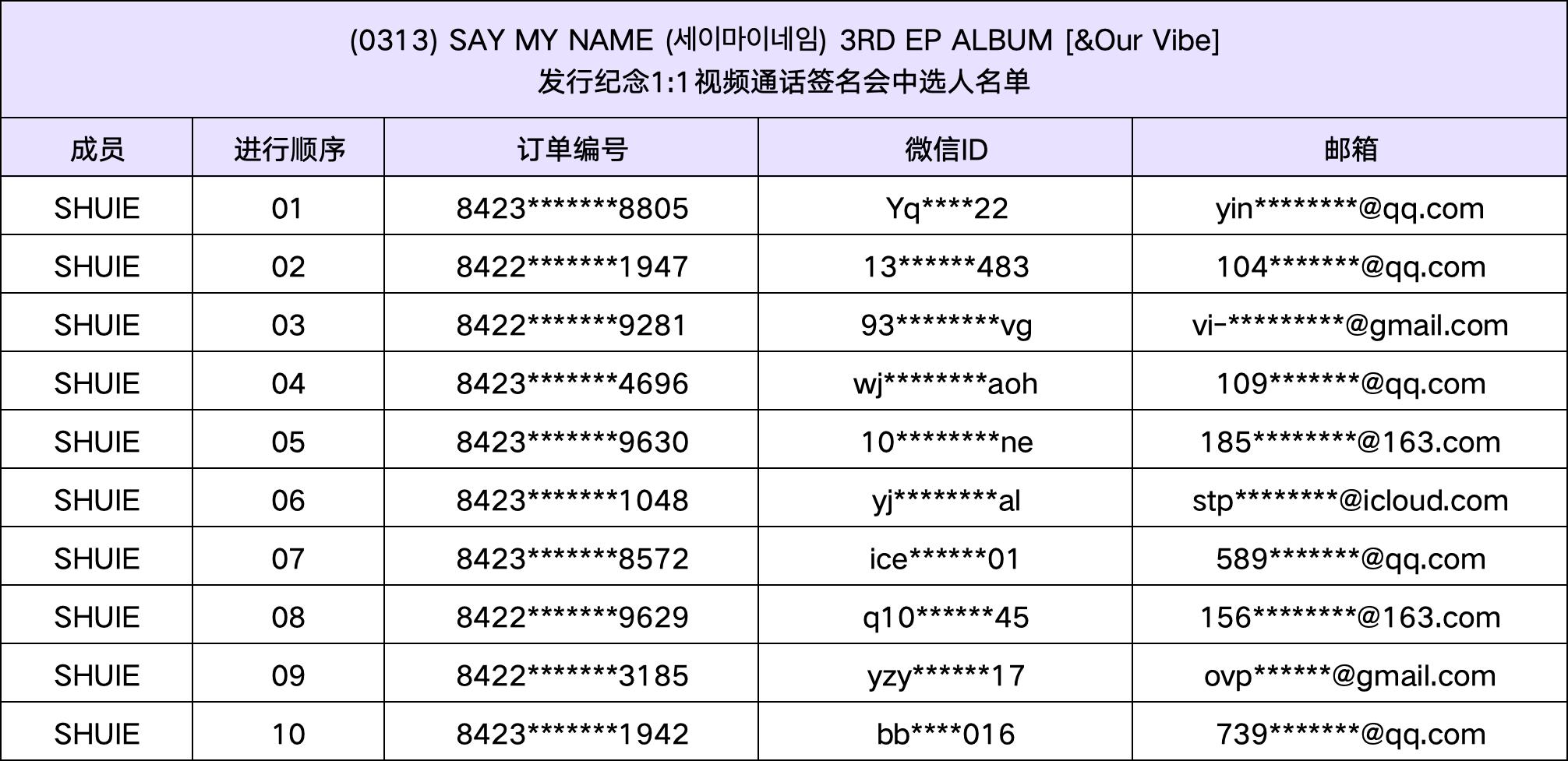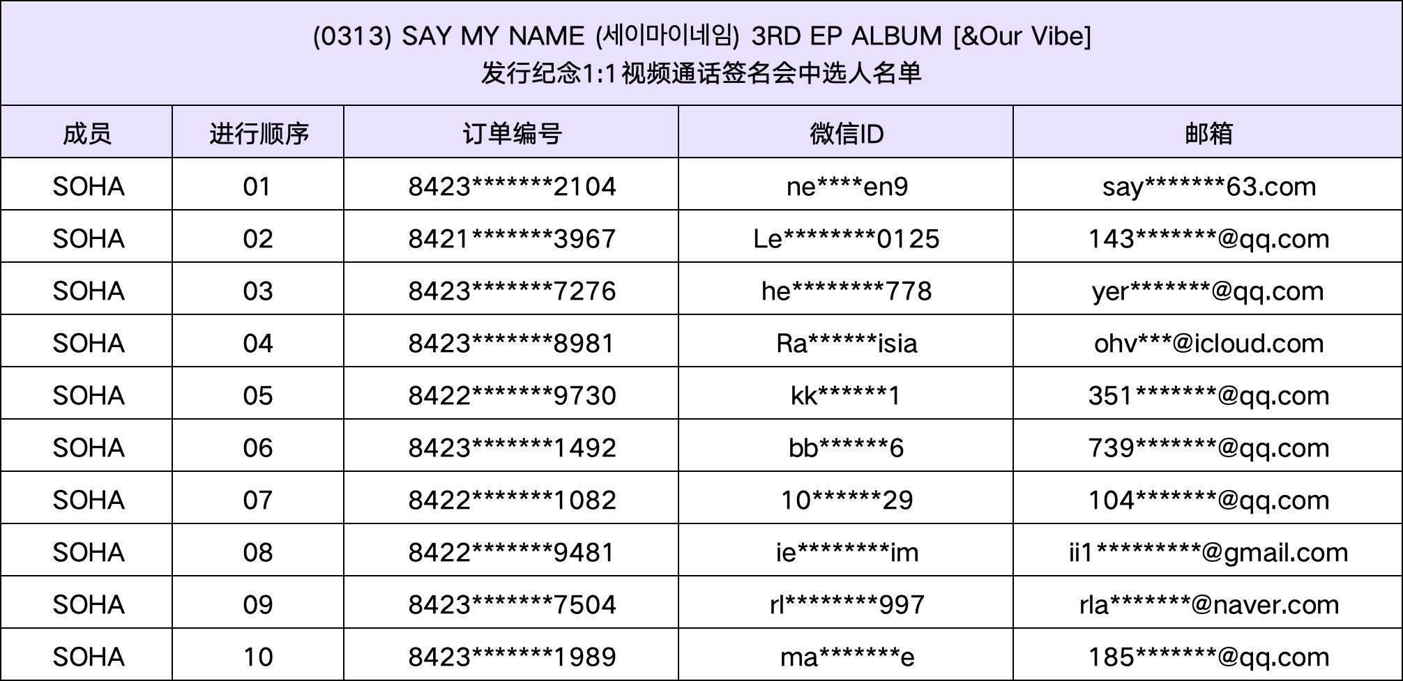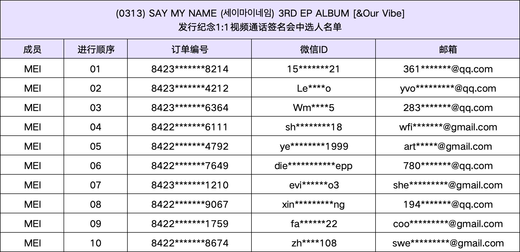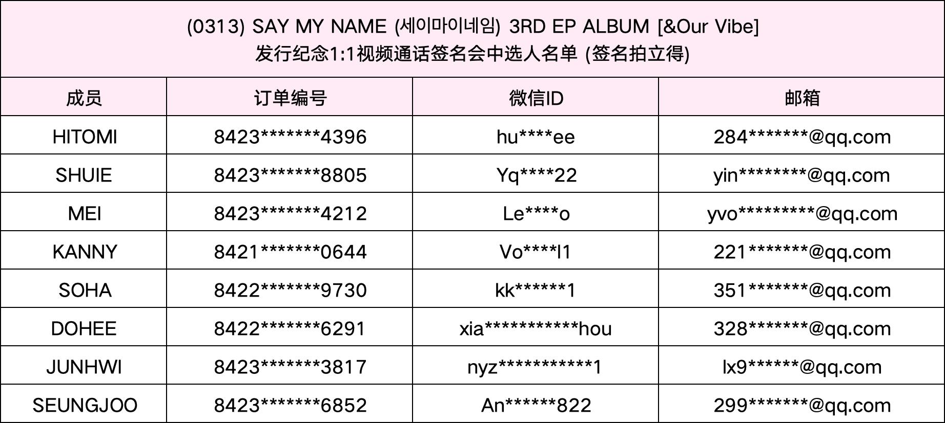 恭喜您中选 (0313) SAY MY NAME (세이마이네임) 3RD EP ALBUM [&Our Vibe]发行纪念视频通话签名会活动。