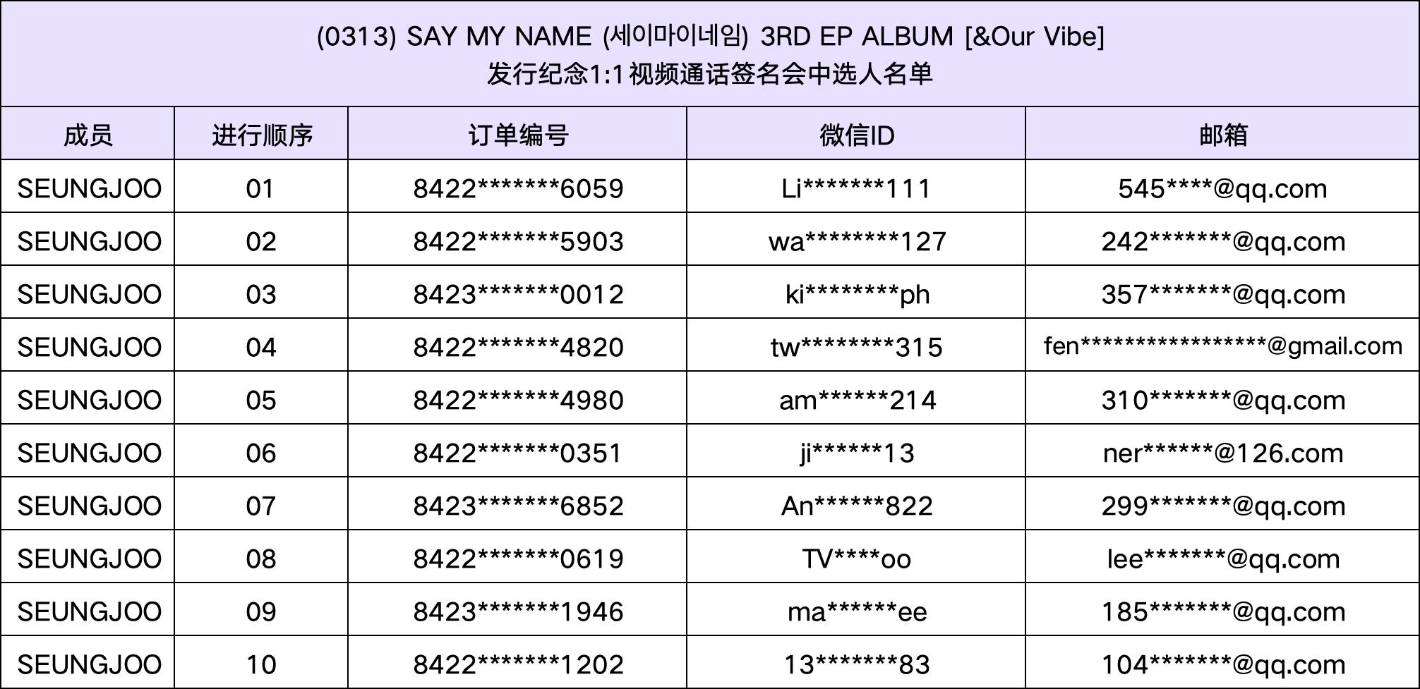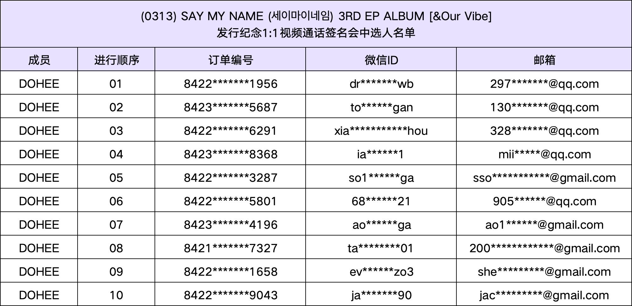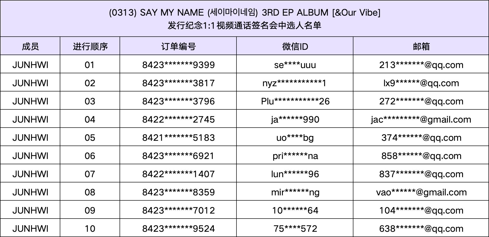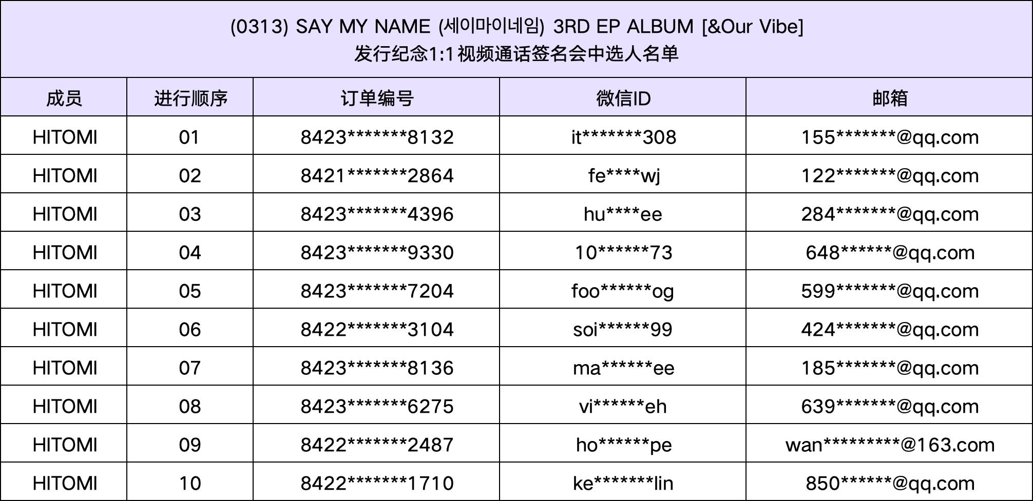 恭喜您中选 (0313) SAY MY NAME (세이마이네임) 3RD EP ALBUM [&Our Vibe]发行纪念视频通话签名会活动。