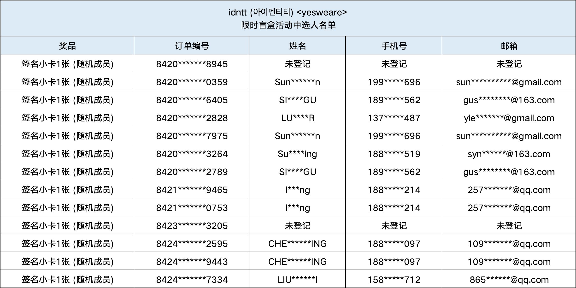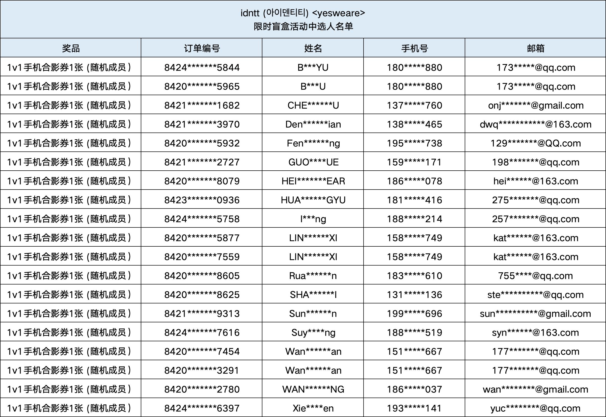 恭喜您中选 (0321) idntt (아이덴티티) - 미니 [yesweare] 限量盲盒活动。