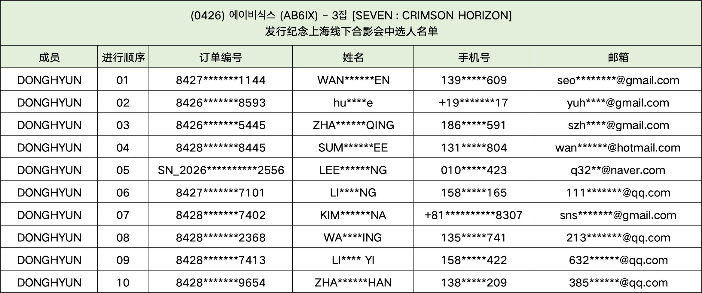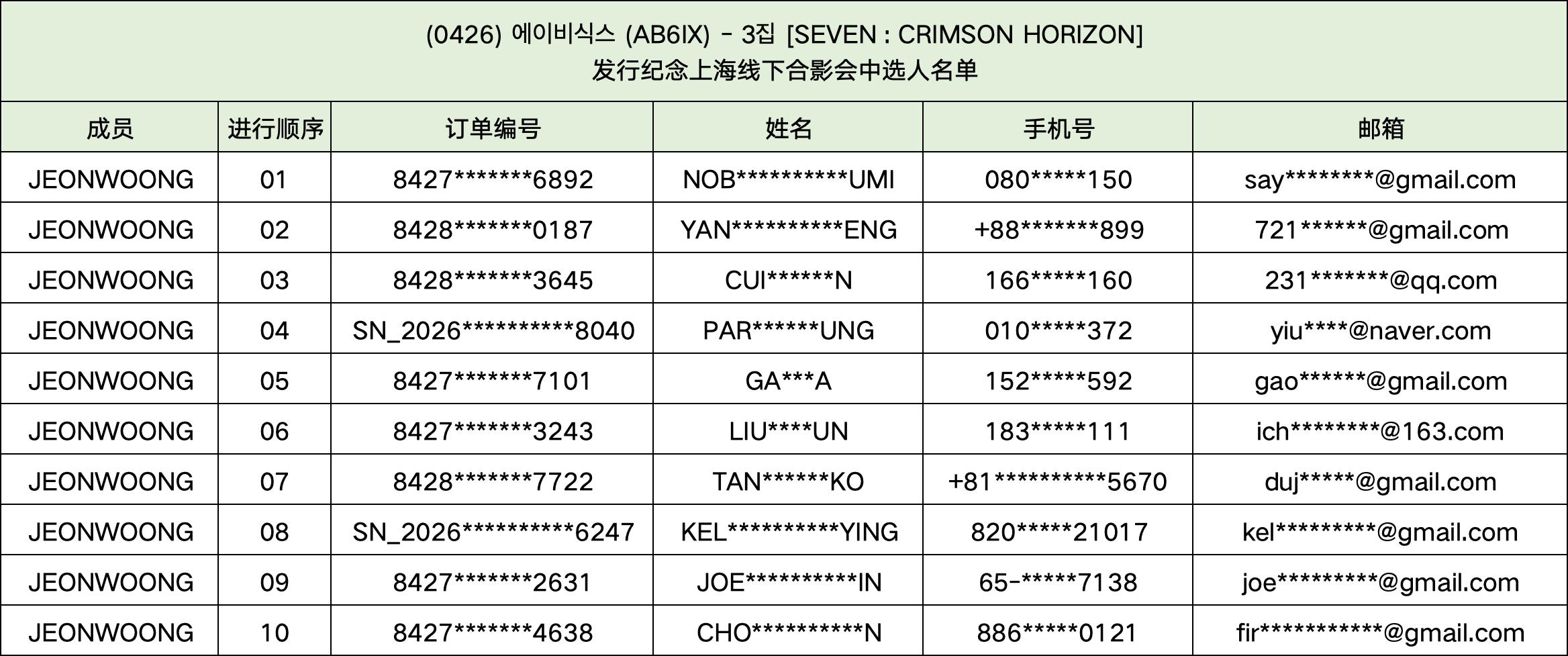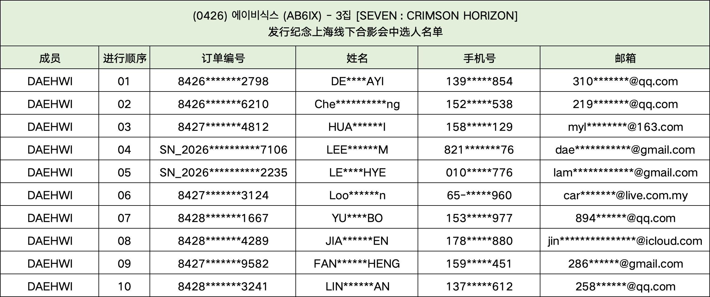 恭喜您中选 (0426) 에이비식스 (AB6IX) - 3집 [SEVEN : CRIMSON HORIZON] 发行纪念上海线下合影会。