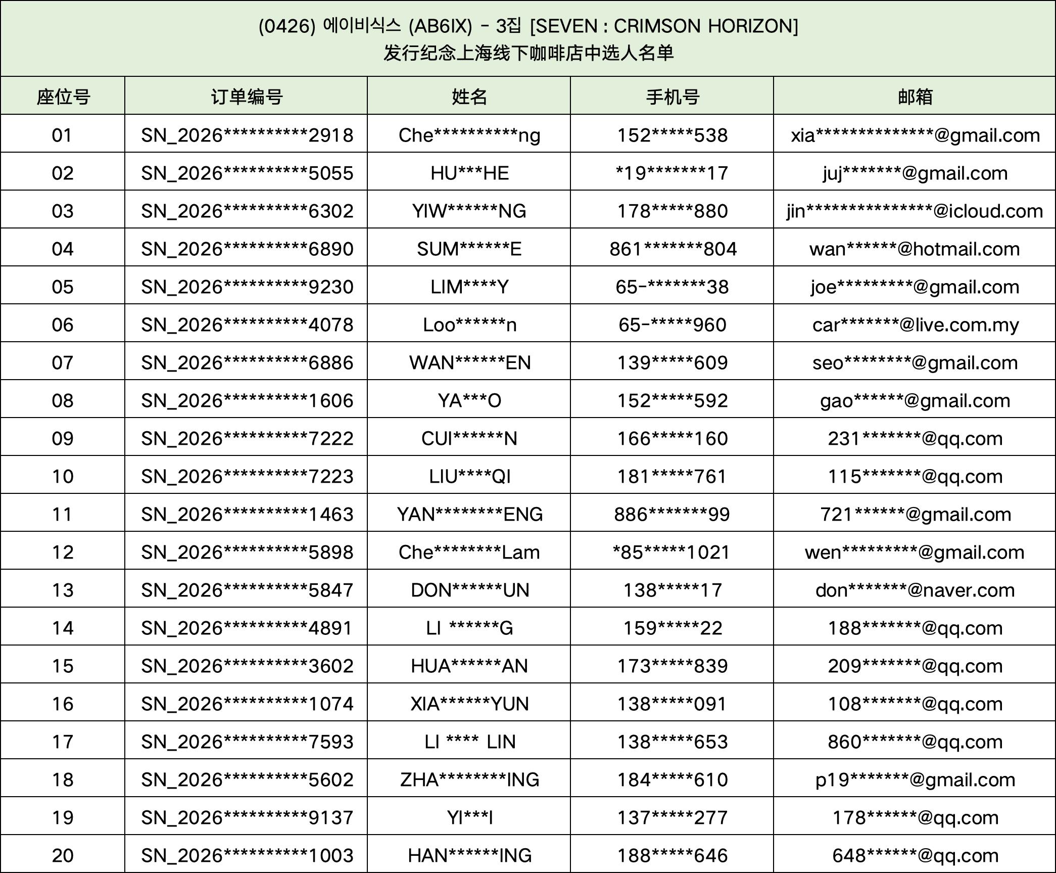 恭喜您中选 (0426) 에이비식스 (AB6IX) - 3집 [SEVEN : CRIMSON HORIZON] 发行纪念上海线下一日咖啡店。
