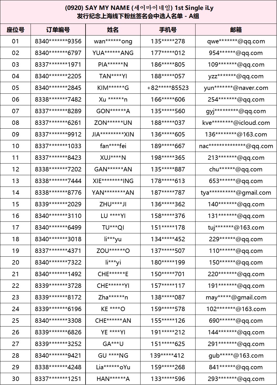 恭喜您中选 (9/20) SAY MY NAME - 1st Single iLy 发行纪念中国内地线下签名会