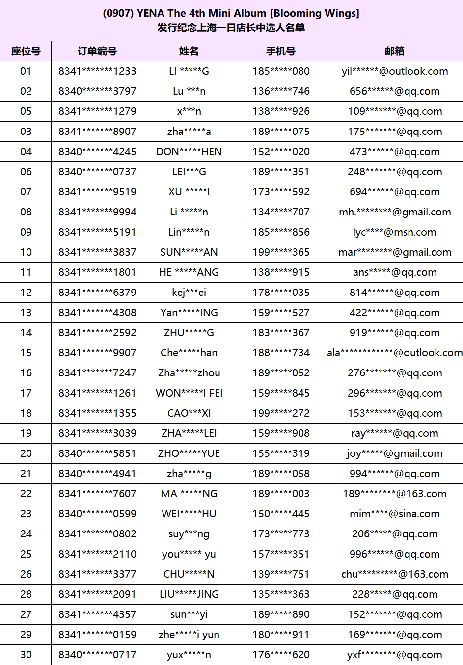 恭喜您中选(907) YENA The 4th Mini Album [Blooming Wings] 发行纪念上海线下一日店长活动