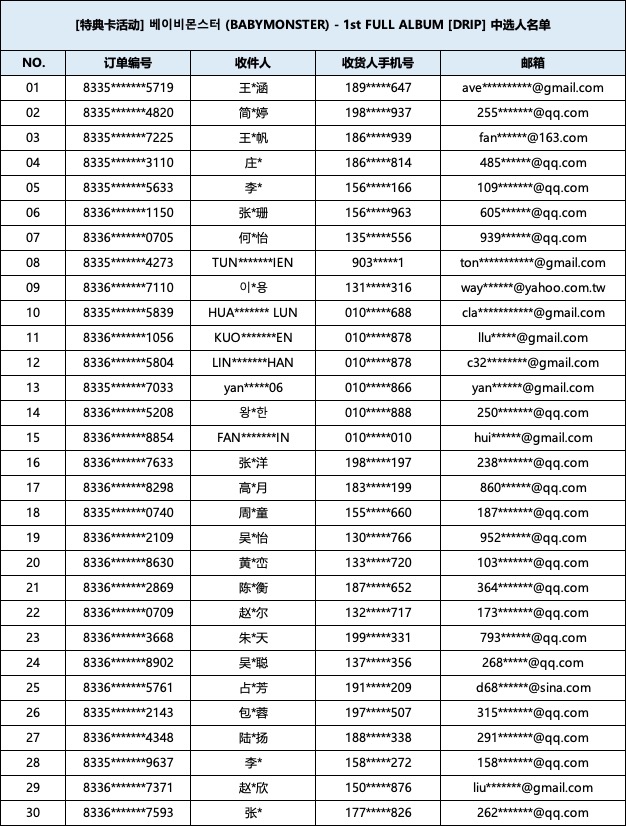 恭喜您中选베이비몬스터 (BABYMONSTER) - 1st FULL ALBUM [DRIP] 特典卡活动的签名小卡。