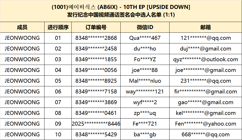 恭喜您中选 AB6IX - 10TH EP [UPSIDE DOWN] 发行纪念中国视频通话签名会 (1V1影通)