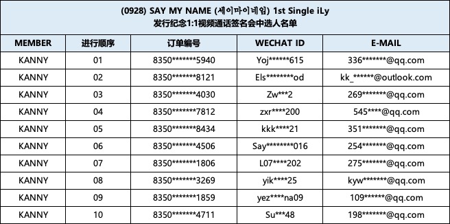 恭喜您中选 (9/28) SAY MY NAME - 1st Single iLy 发行纪念1:1视频通话签名会。