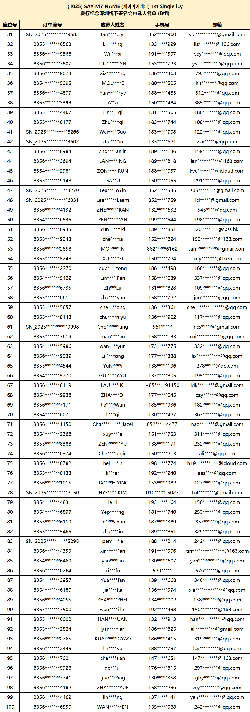恭喜您中选 (10/25) SAY MY NAME - 1st Single iLy 发行纪念中国内地线下签名会(深圳场)