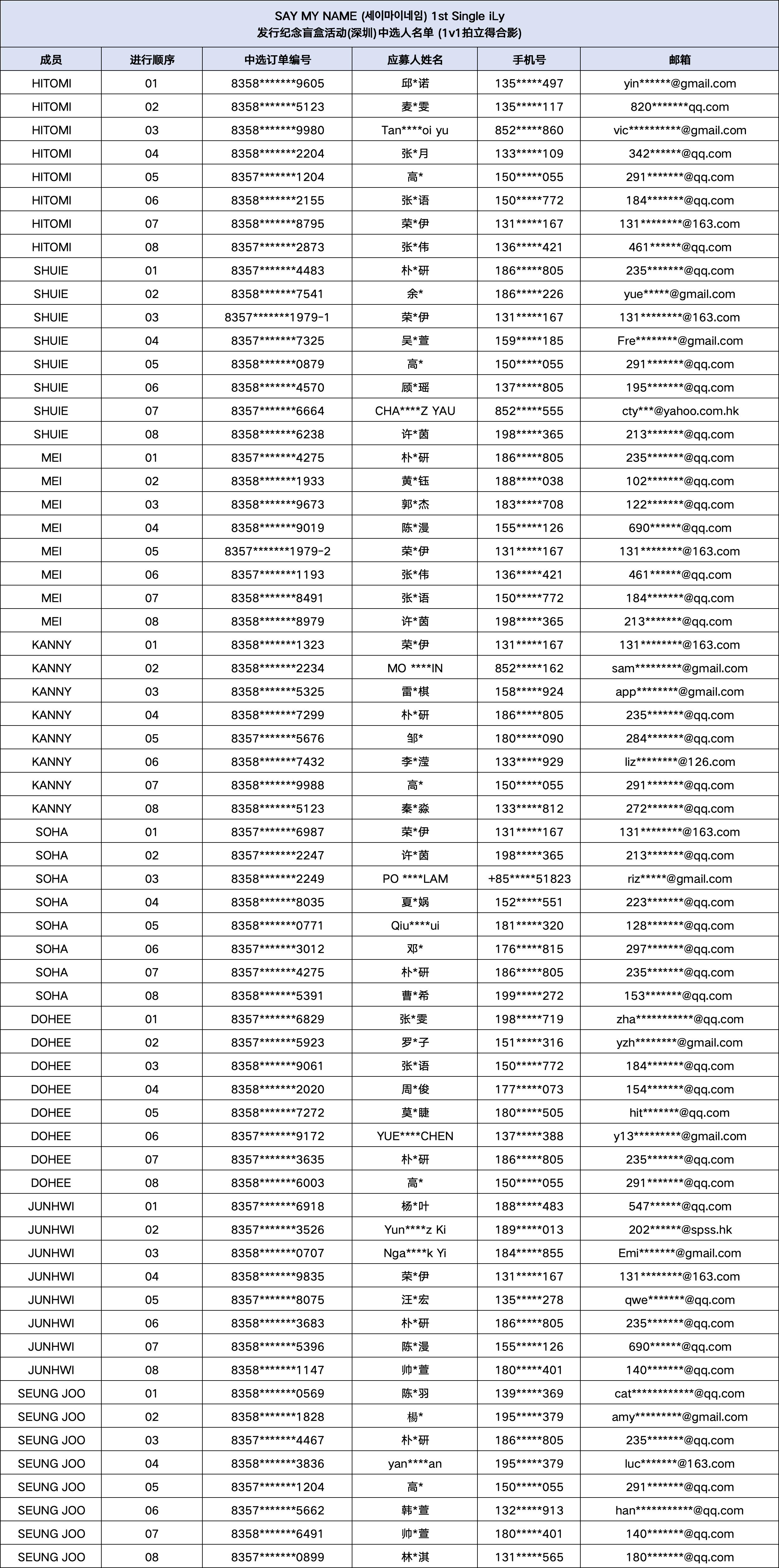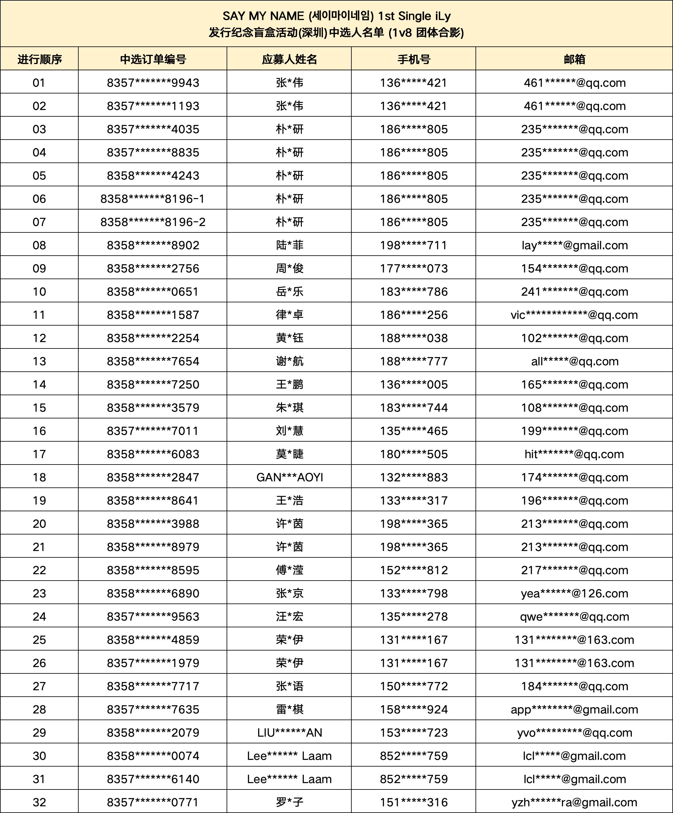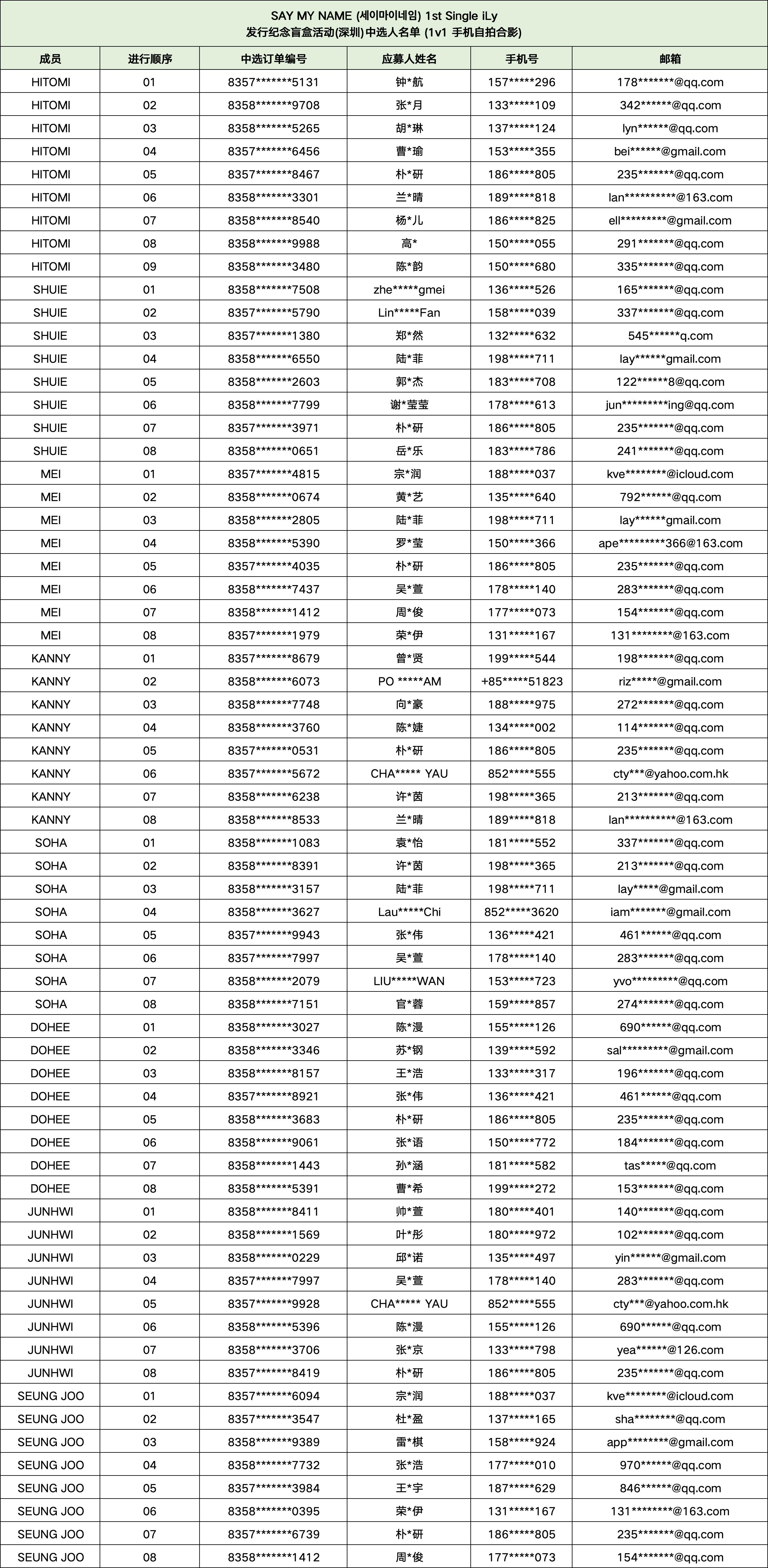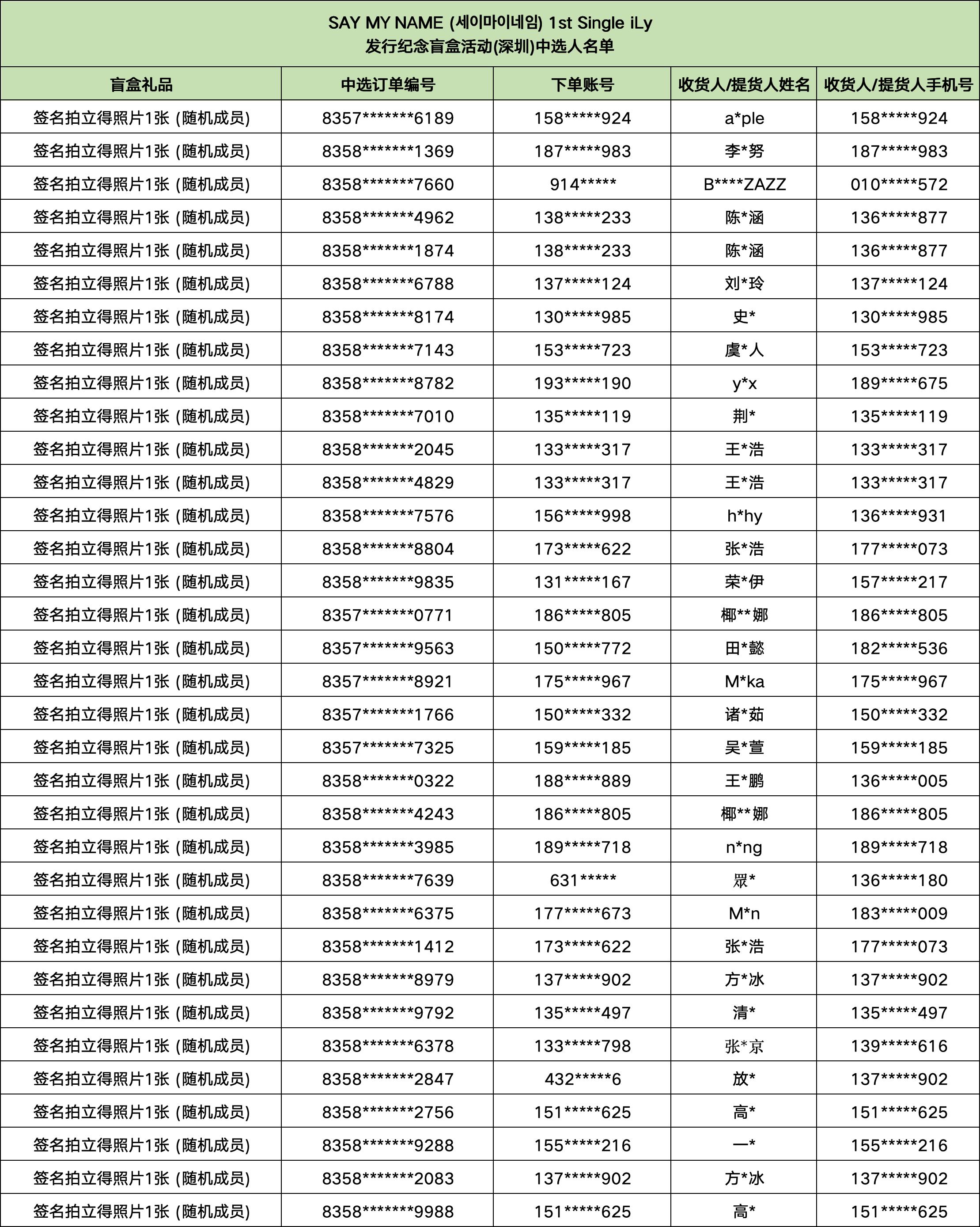 恭喜您中选 (10/25) SAY MY NAME - 1st Single iLy 发行纪念盲盒抽抽乐活动。