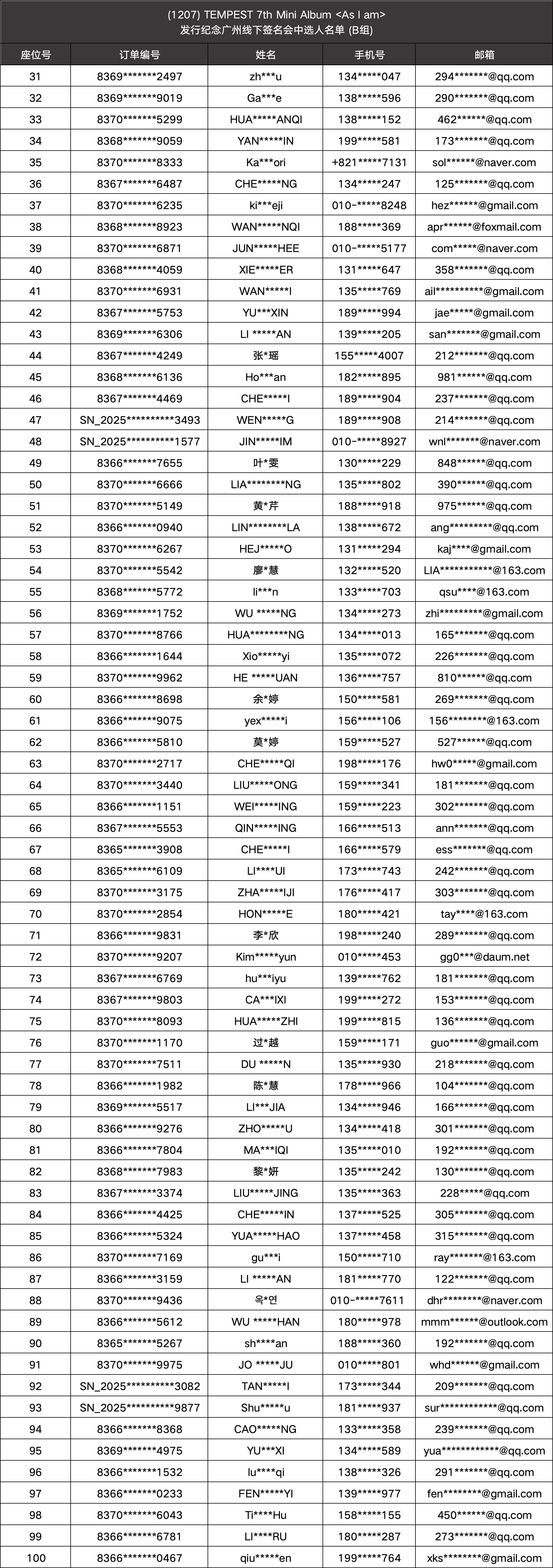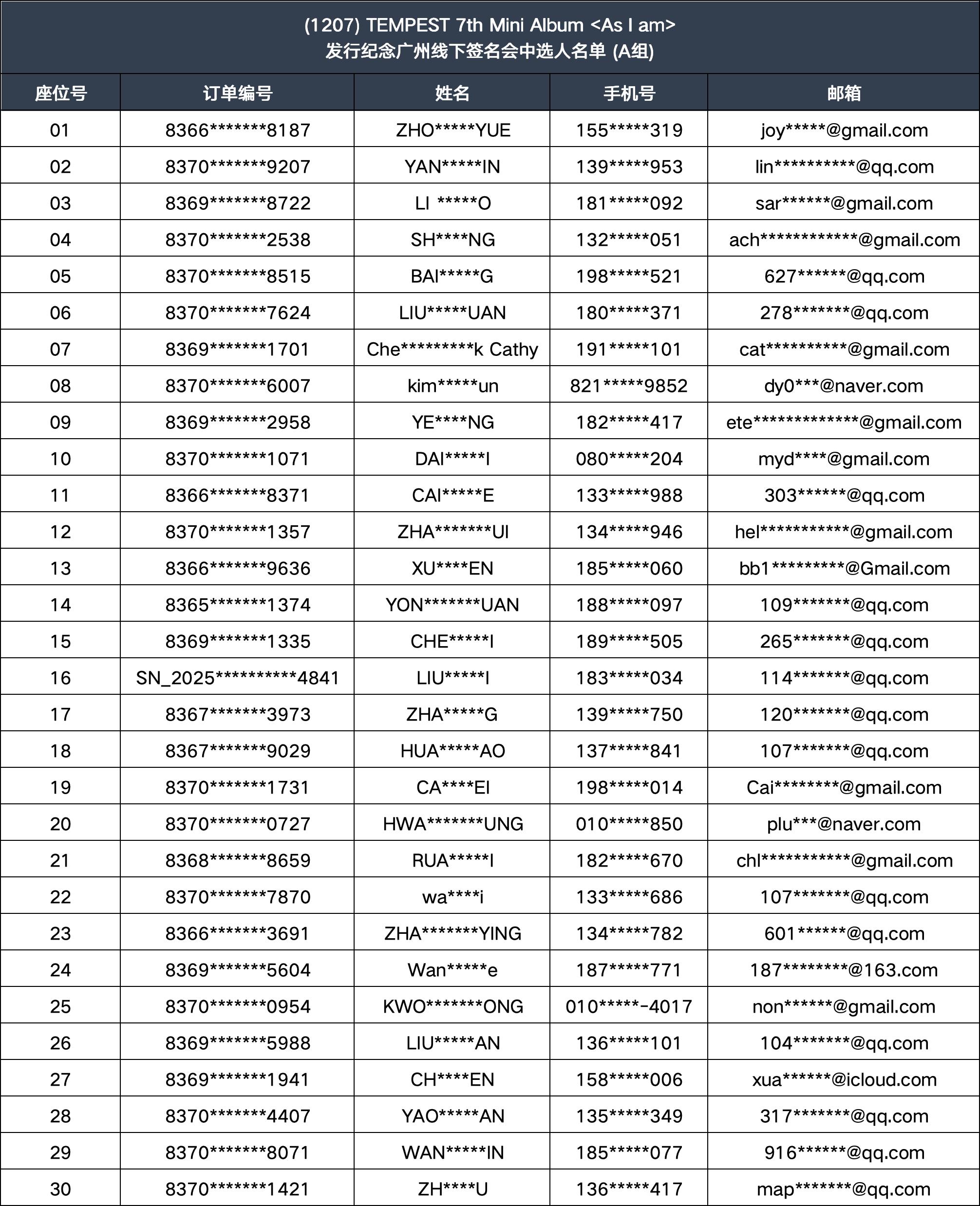 恭喜您中选 (1207) TEMPEST 7th Mini Album <As I am>发行纪念中国内地线下签名会(广州场)。