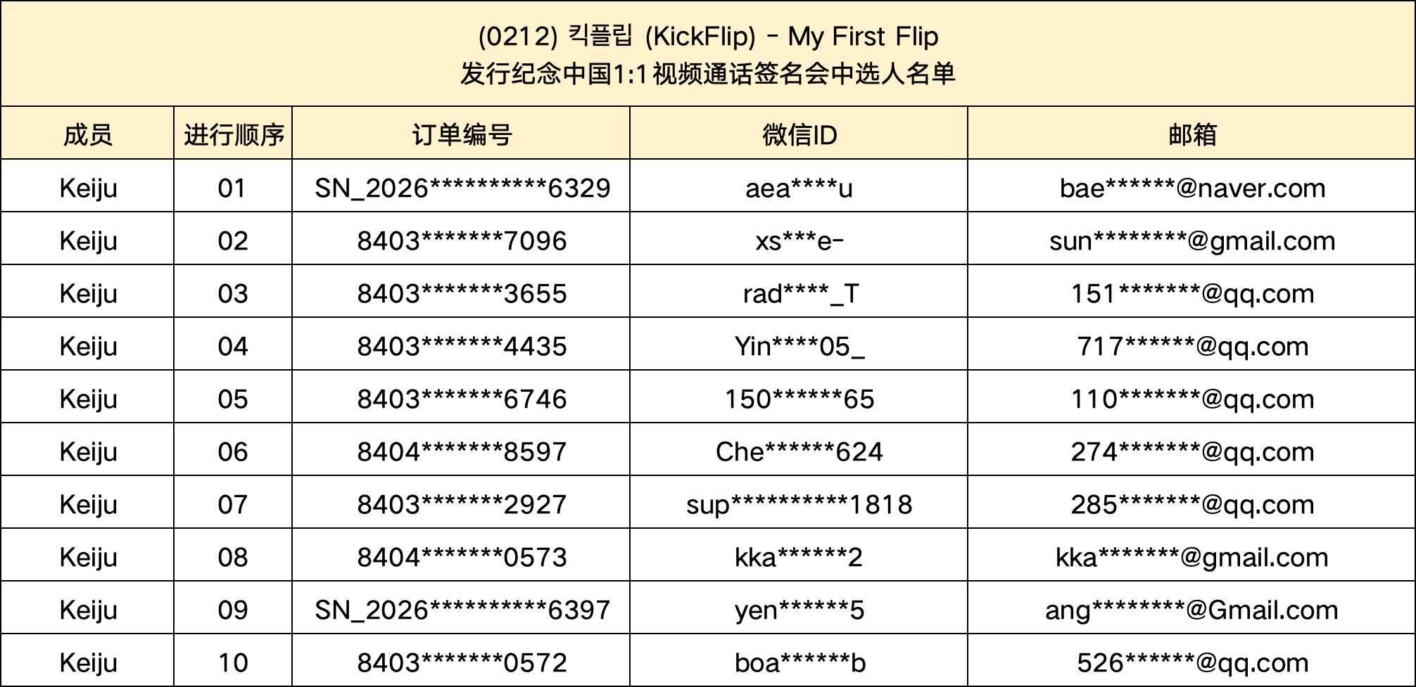 恭喜您中选 (0212) 킥플립 (KickFlip) - My First Flip 发行纪念中国视频通话签名会。