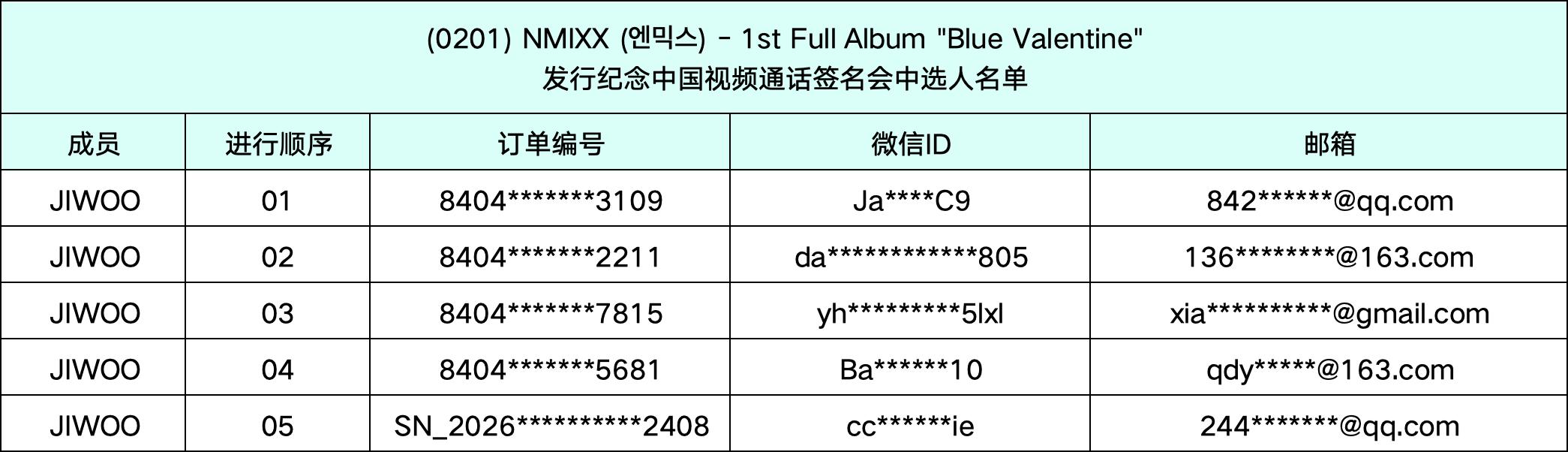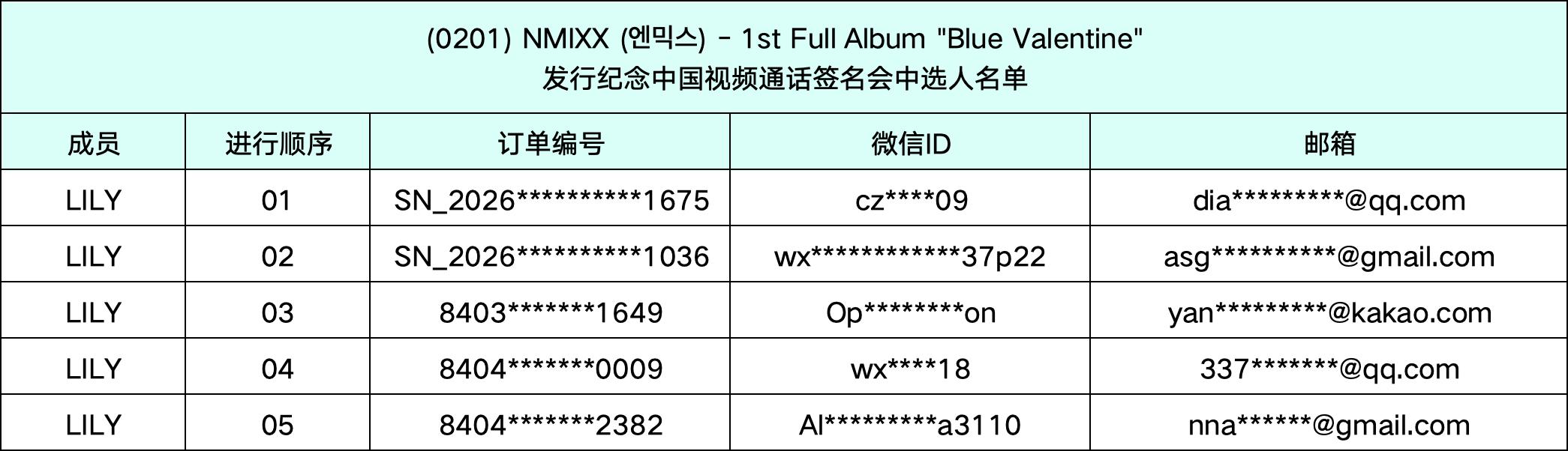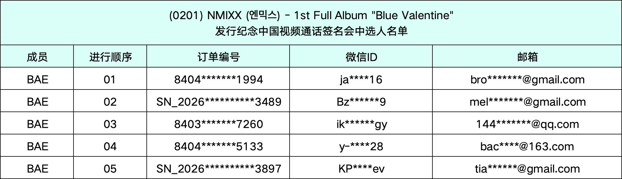 恭喜您中选 (2/1) NMIXX (엔믹스) - 1st Full Album "Blue Valentine"发行纪念1:1视频通话签名会。