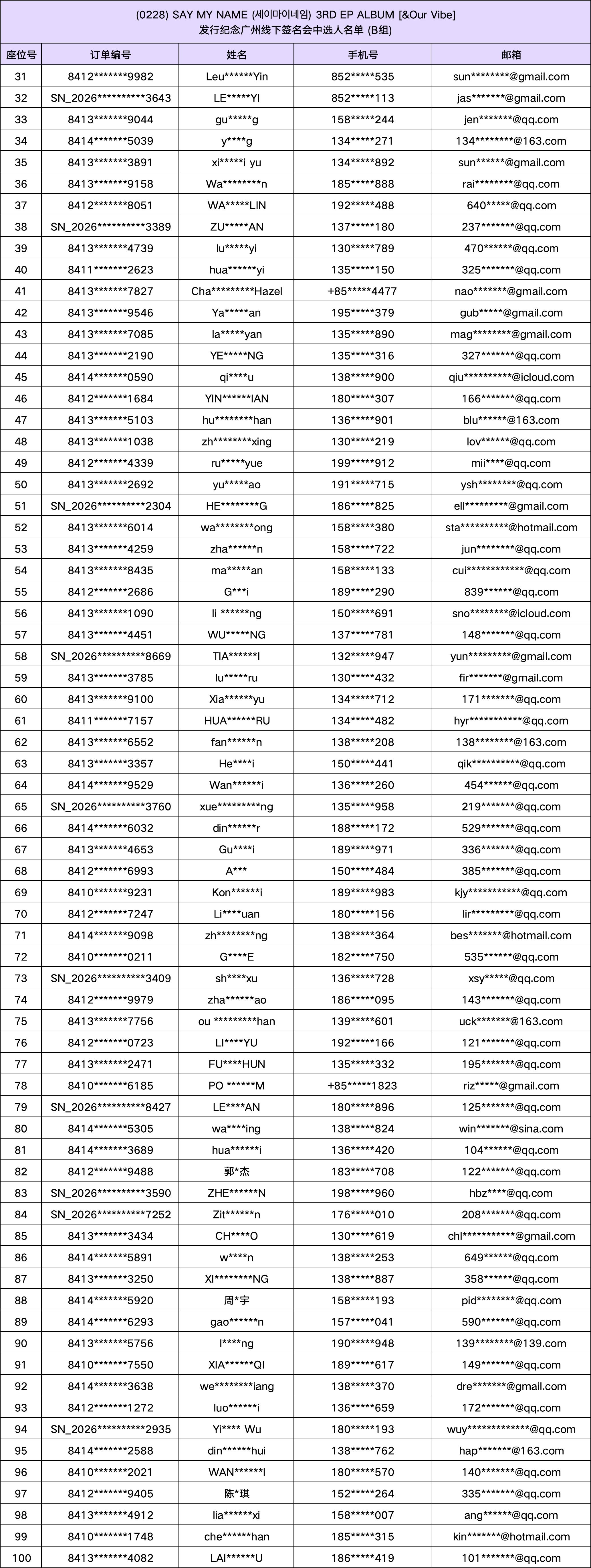 – 在签名会活动进行中请坐在自己号码的位置上。当出现私自交换号码或座位、 不按照自己号码排队、不听从现场工作人员指挥的情况,将被视作拒绝配合,而不能获得签名、 HI BYE 等福利。