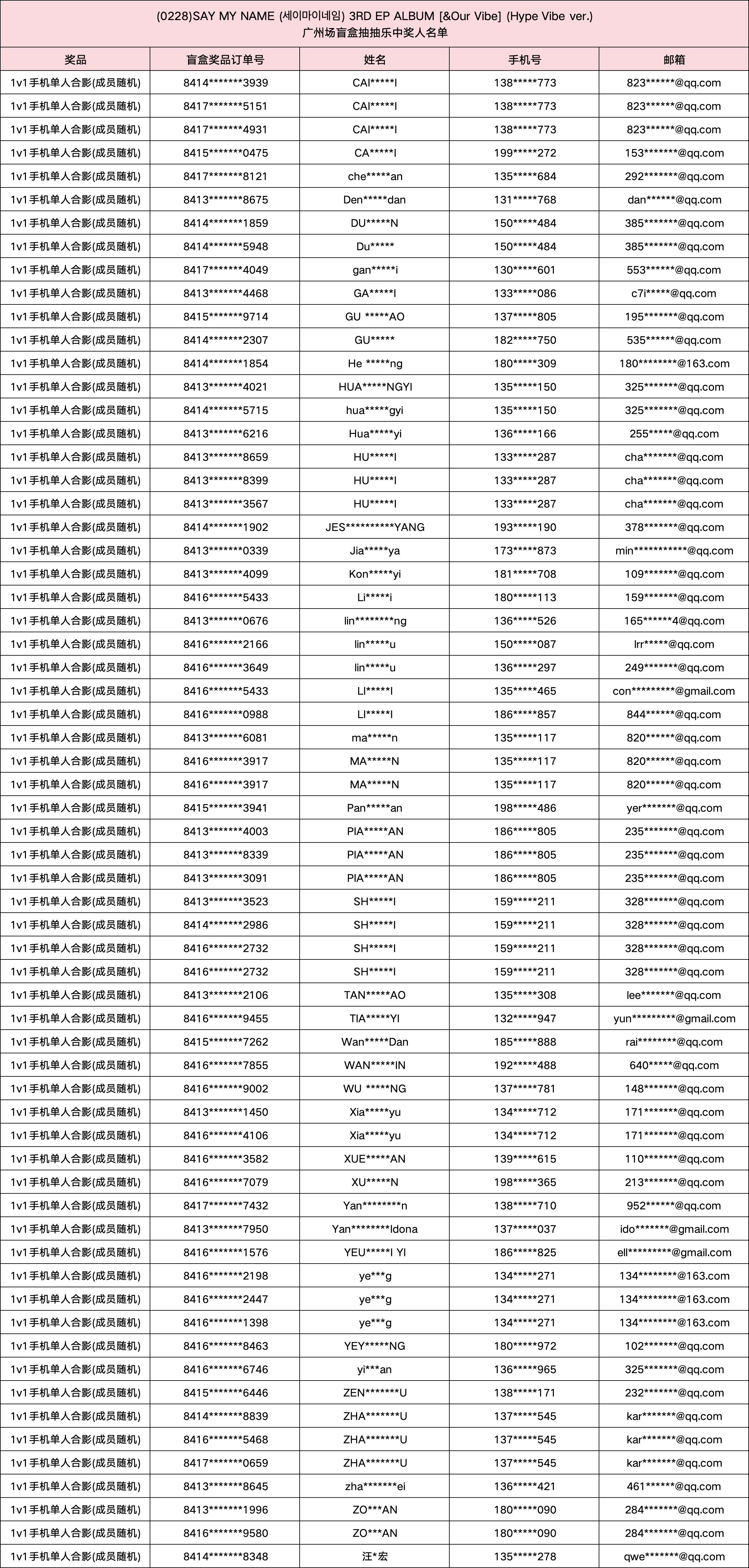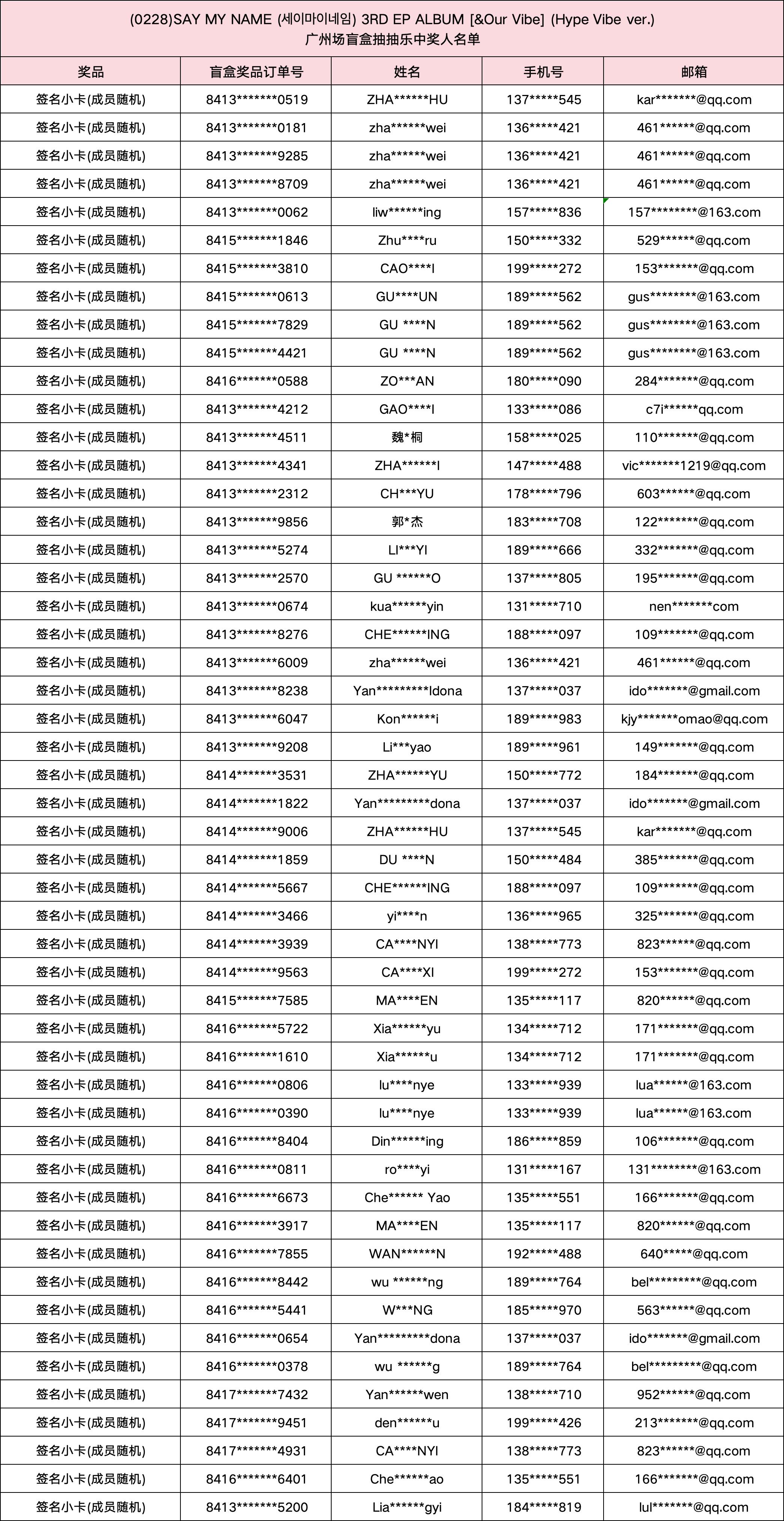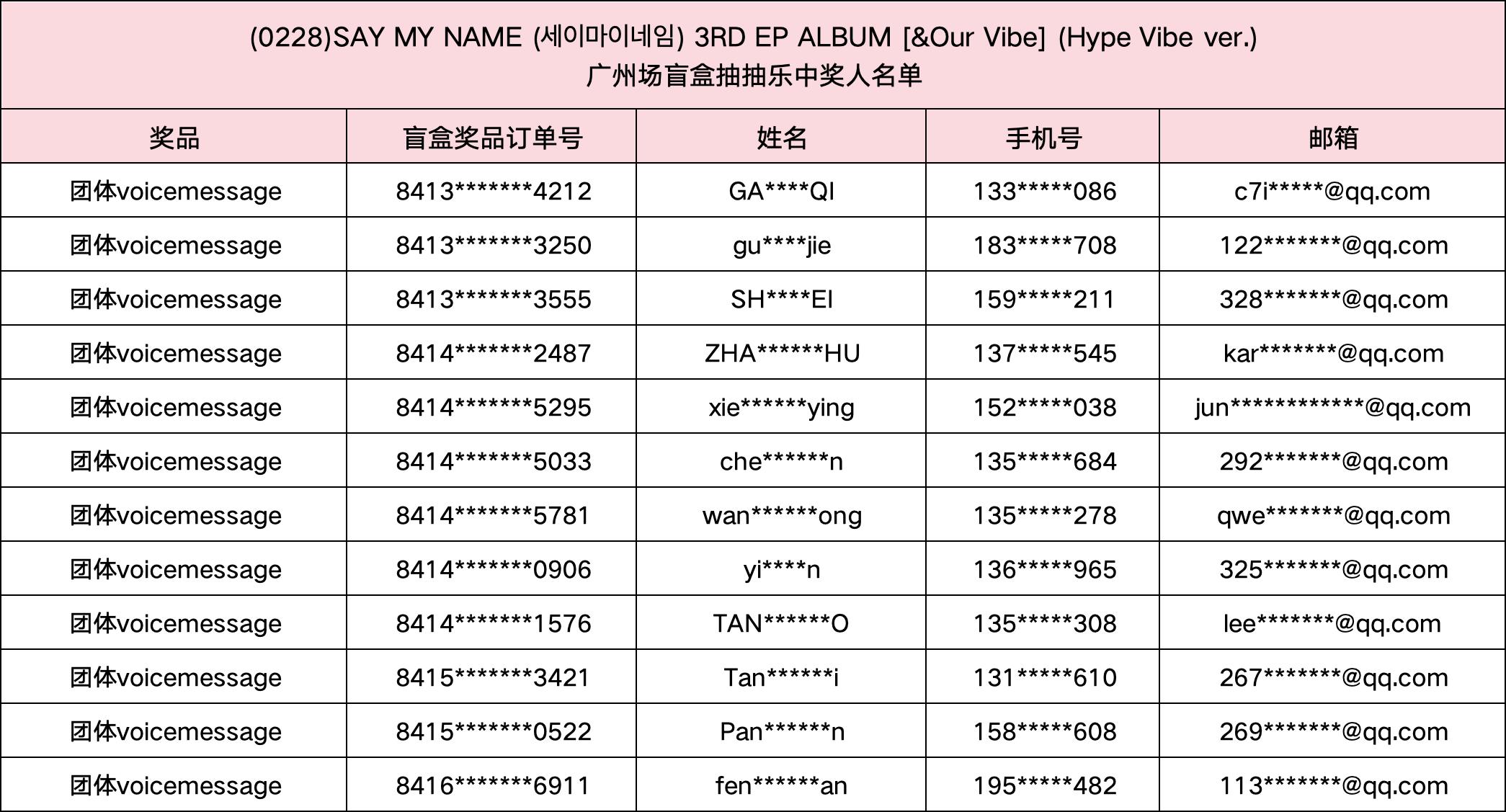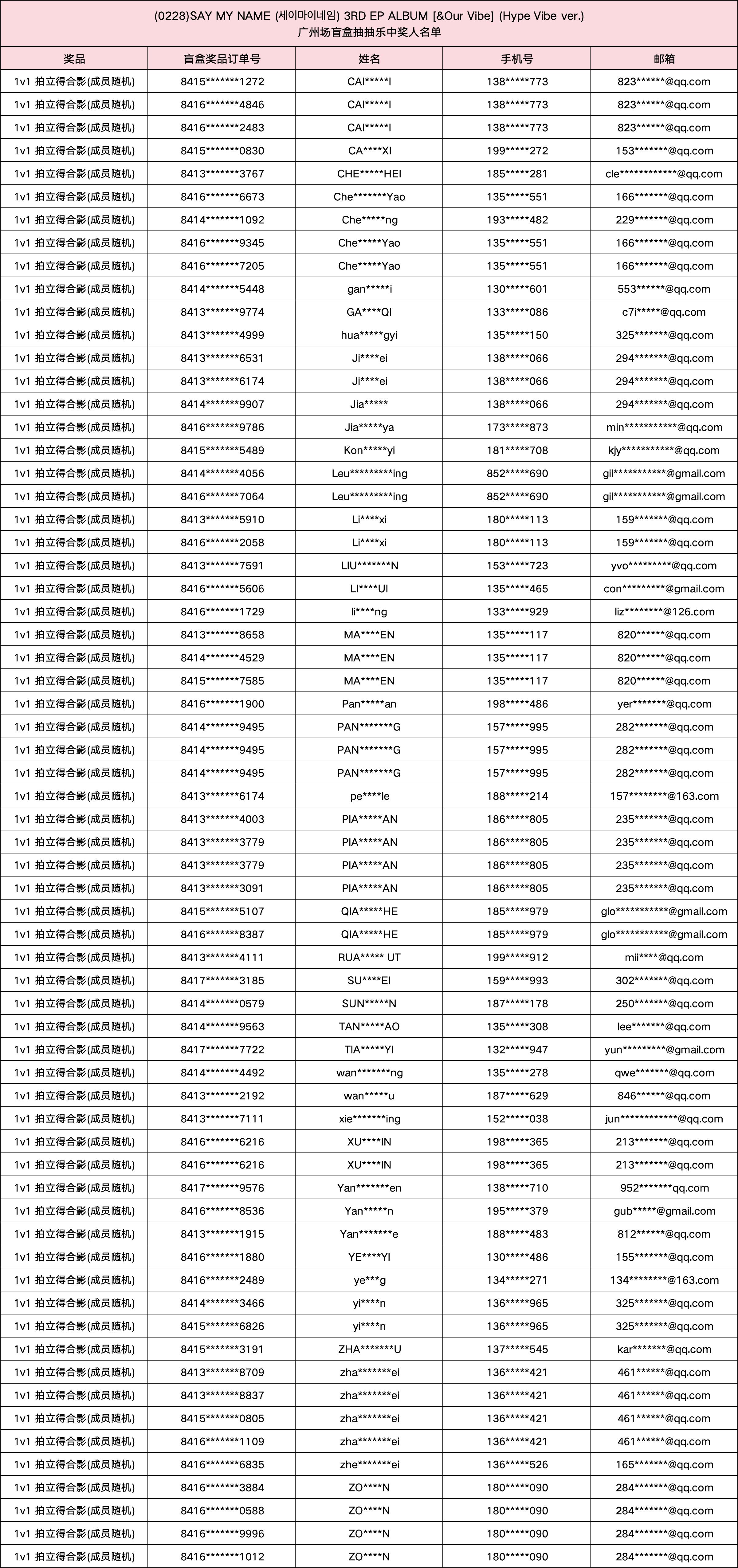 (0228) SAY MY NAME (세이마이네임) 3RD EP ALBUM [&Our Vibe] 发行纪念广州场盲盒抽抽乐。