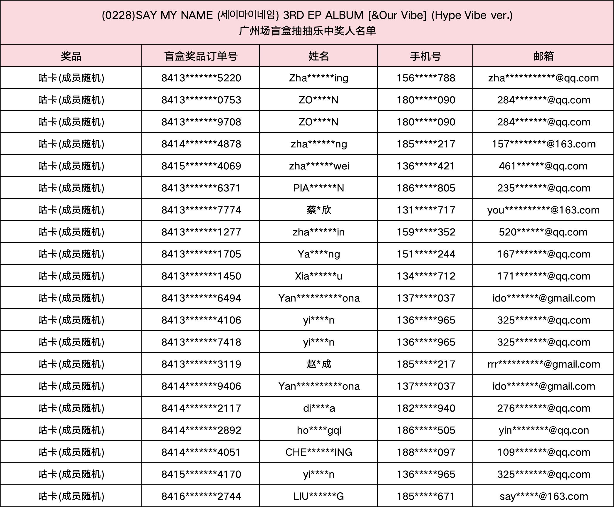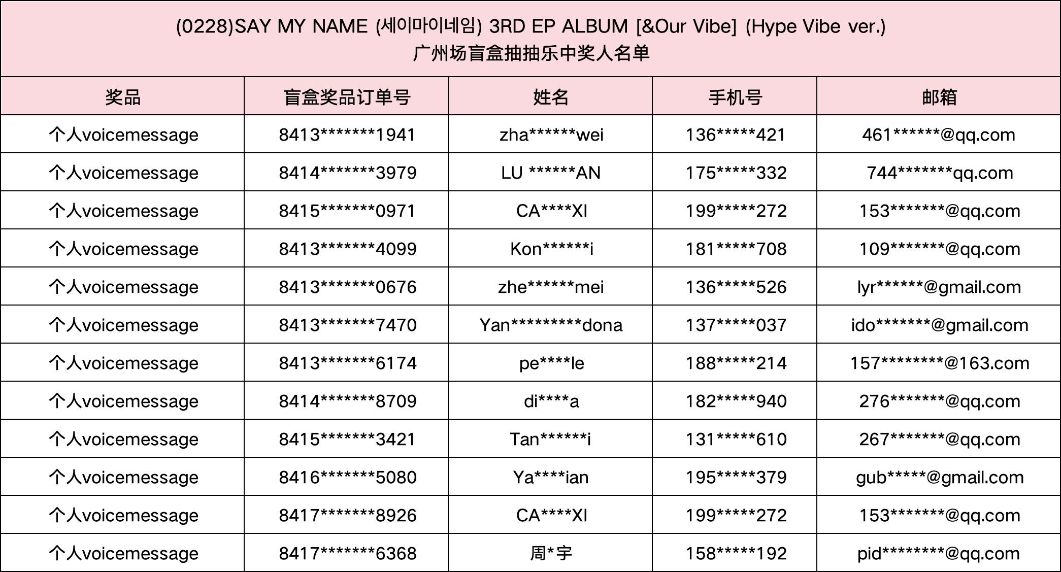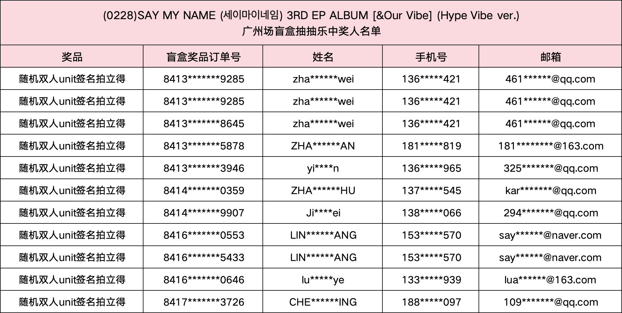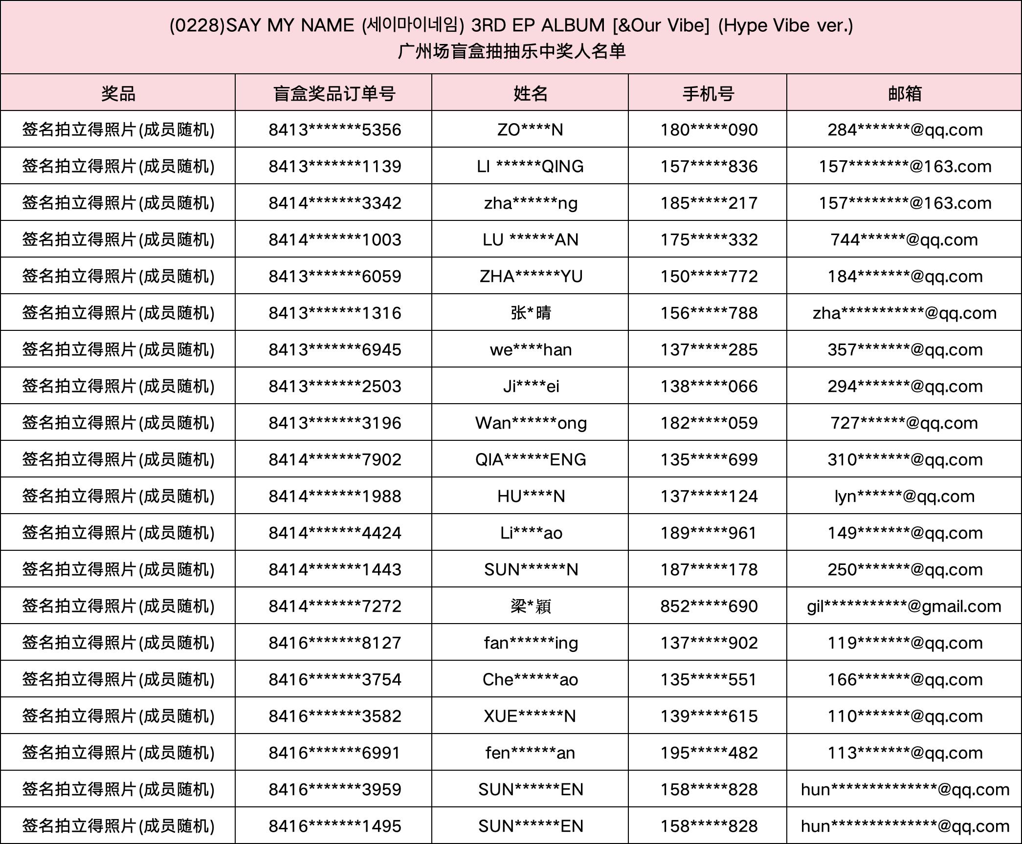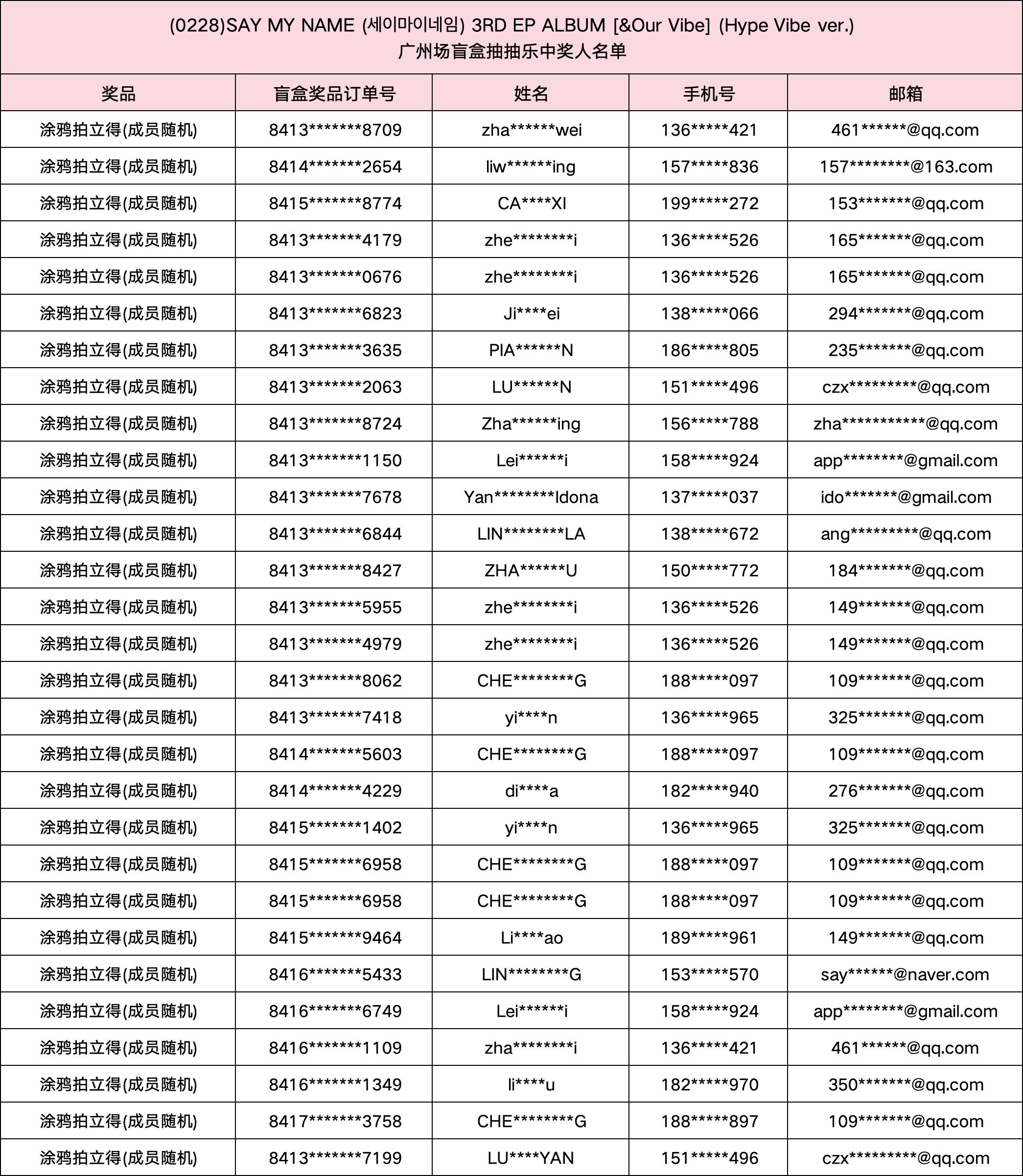 (0228) SAY MY NAME (세이마이네임) 3RD EP ALBUM [&Our Vibe] 发行纪念广州场盲盒抽抽乐。