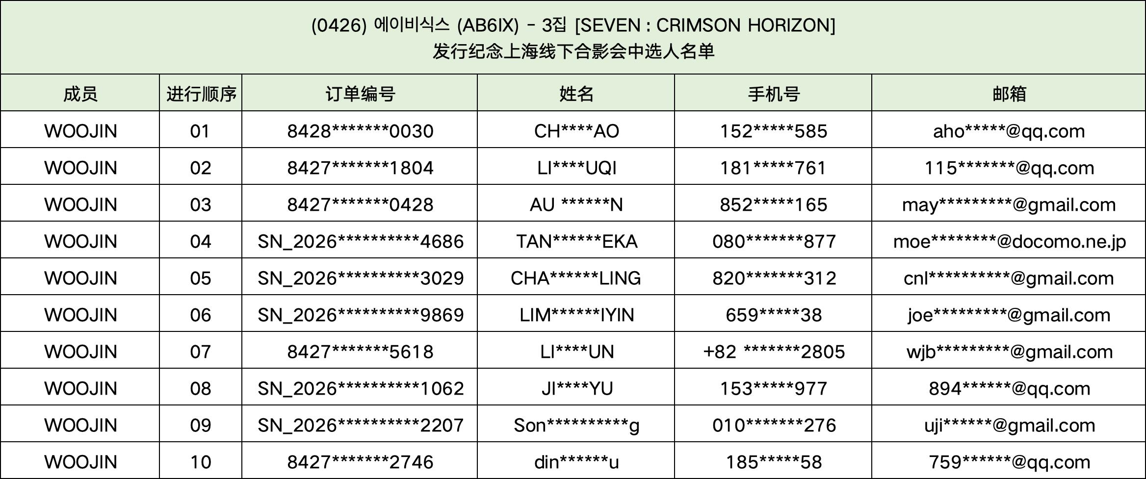 恭喜您中选 (0426) 에이비식스 (AB6IX) - 3집 [SEVEN : CRIMSON HORIZON] 发行纪念上海线下合影会。