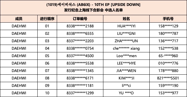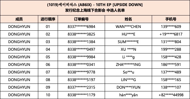 恭喜您中选 (10/19) 에이비식스 (AB6IX) - 10TH EP [UPSIDE DOWN] 发行纪念上海线下合影会。
