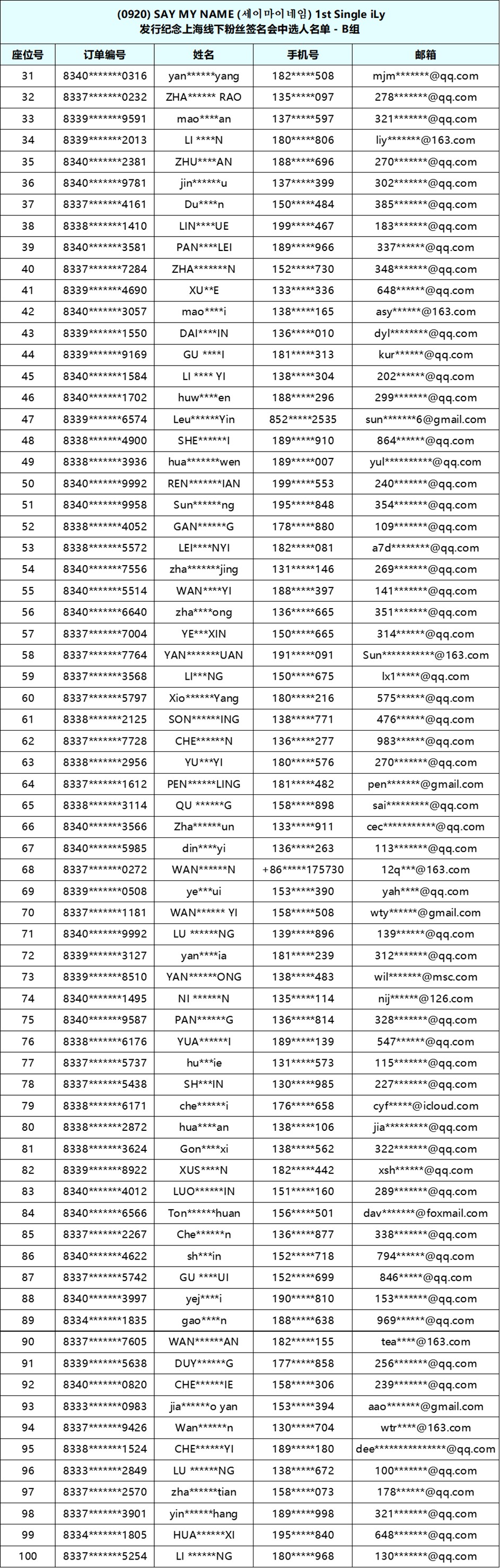恭喜您中选 (9/20) SAY MY NAME - 1st Single iLy 发行纪念中国内地线下签名会