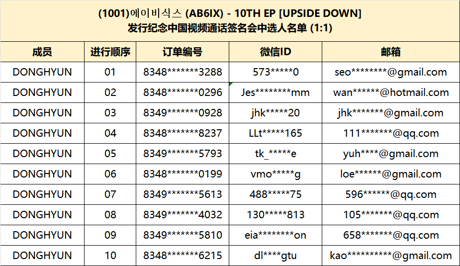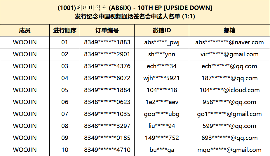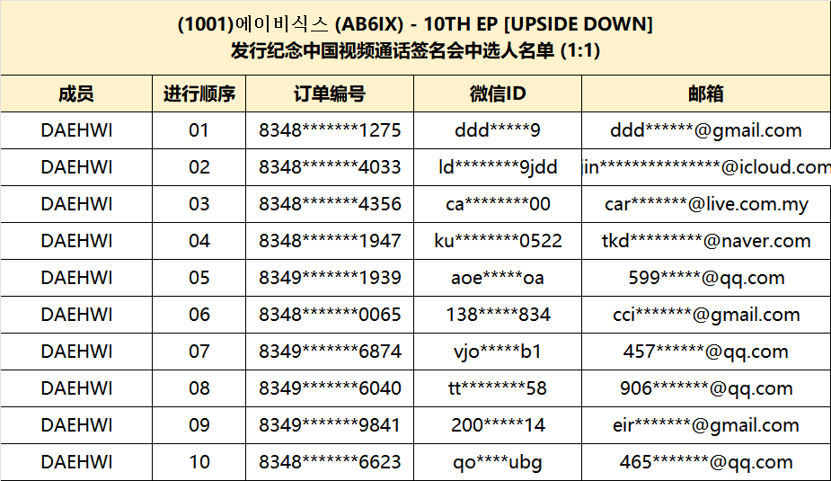 恭喜您中选 AB6IX - 10TH EP [UPSIDE DOWN] 发行纪念中国视频通话签名会 (1V1影通)