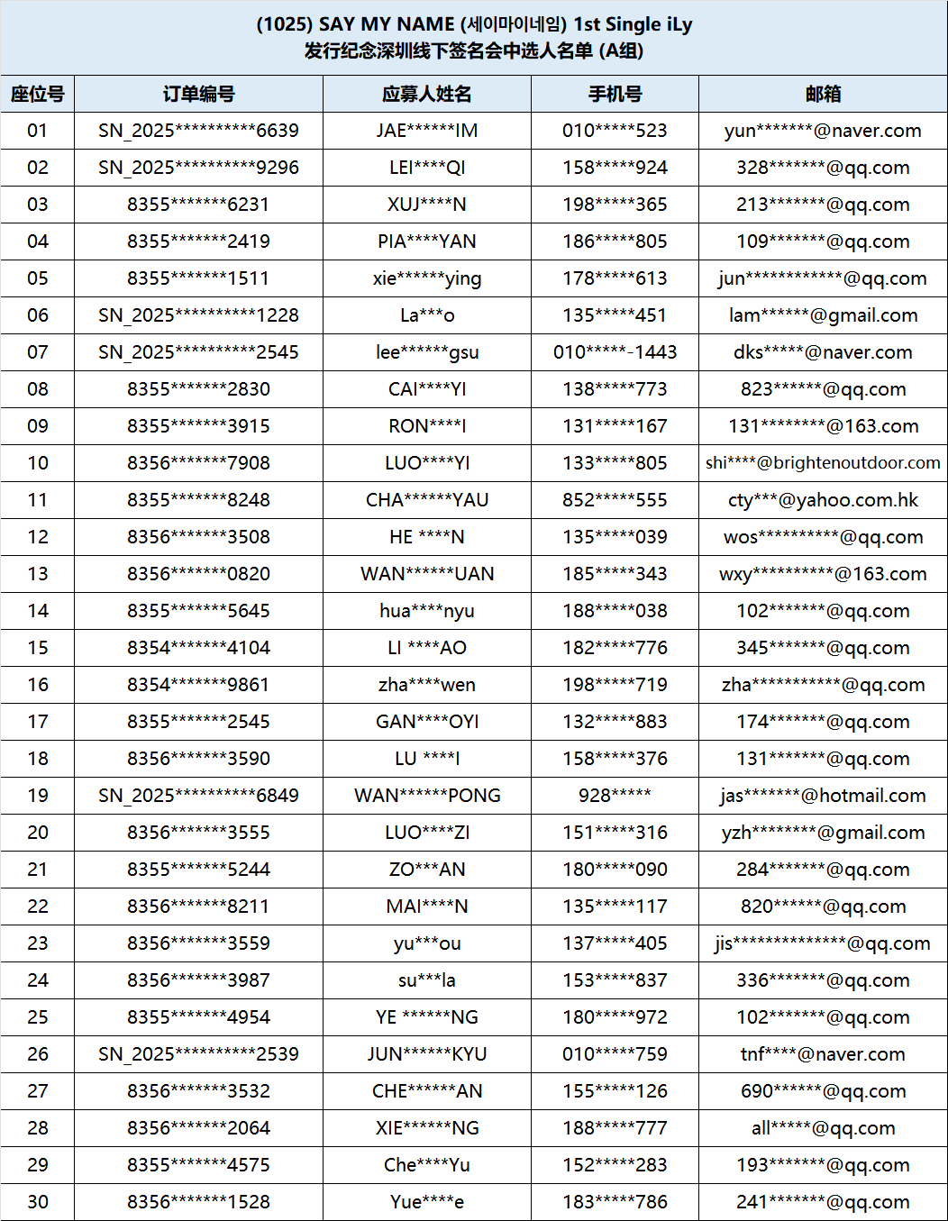 恭喜您中选 (10/25) SAY MY NAME - 1st Single iLy 发行纪念中国内地线下签名会(深圳场)