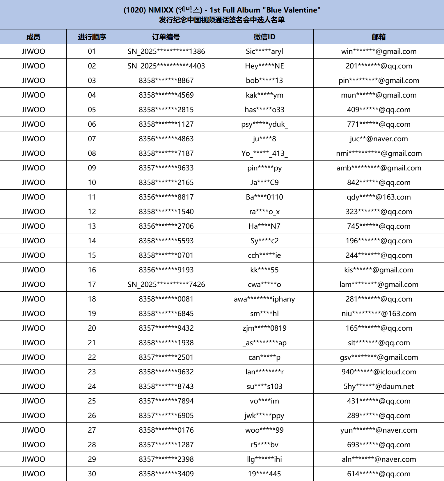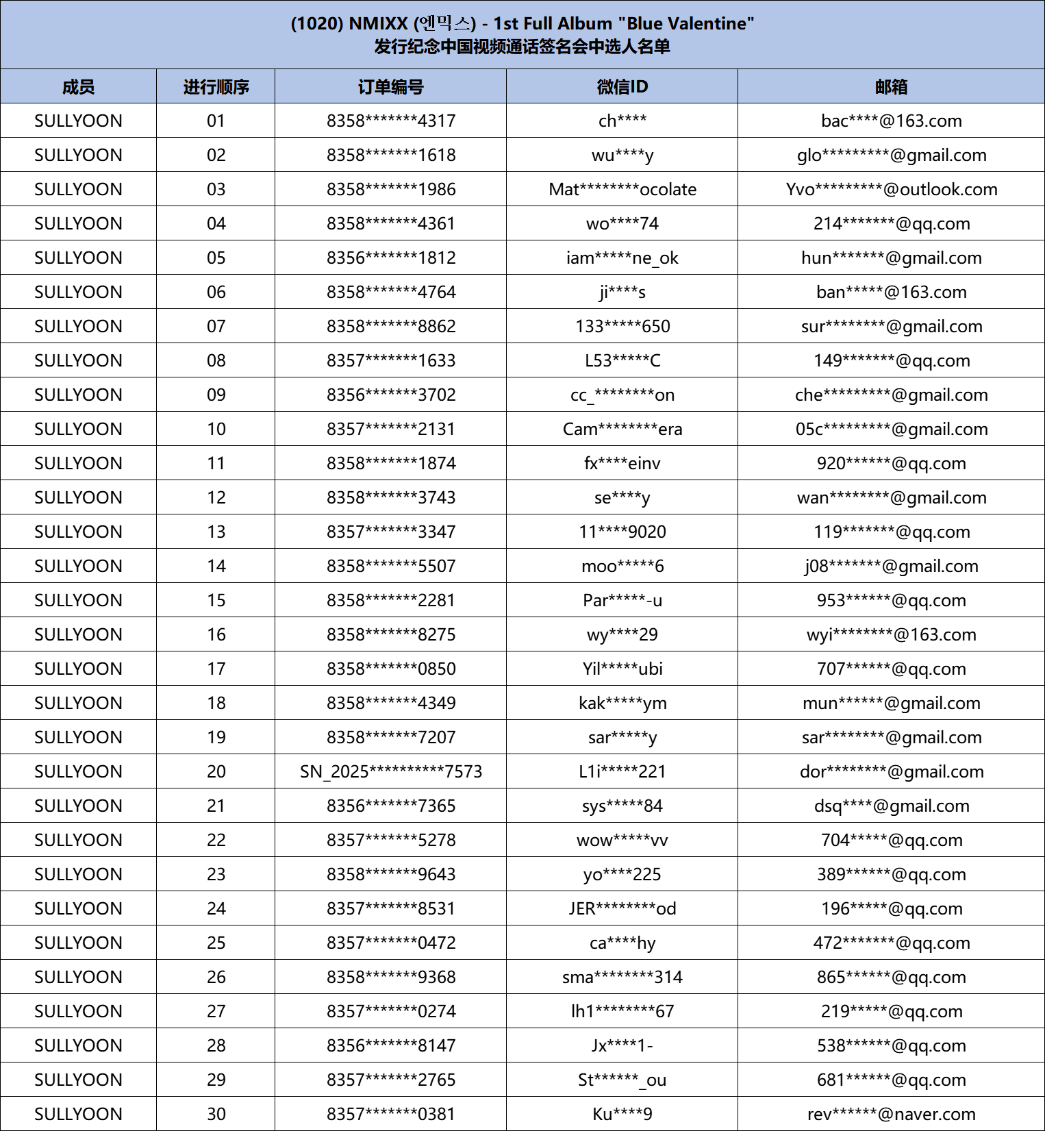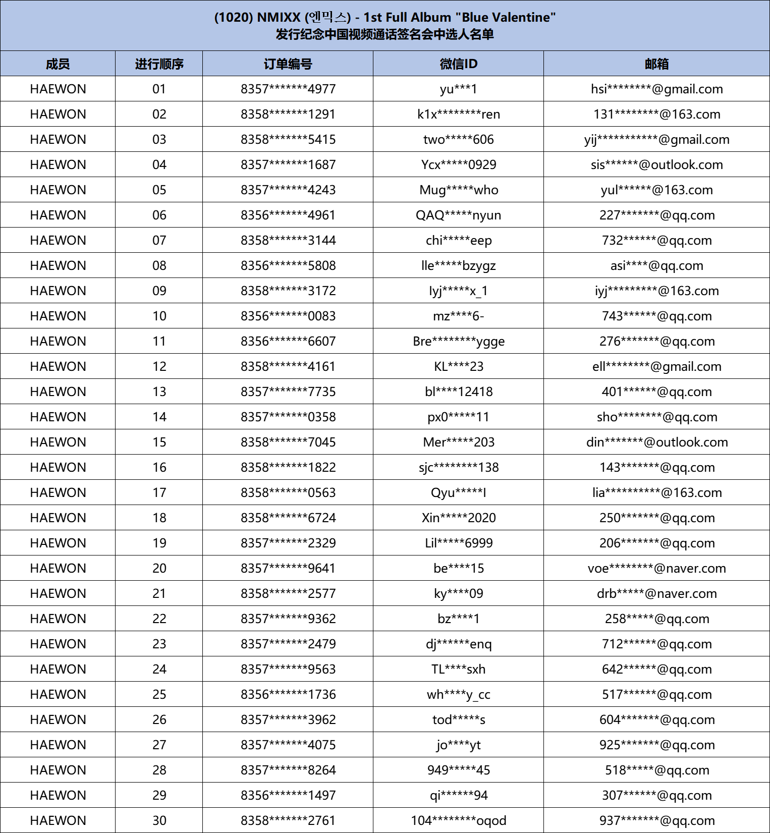 - 粉丝签名会预计按公告中的号码顺序进行.